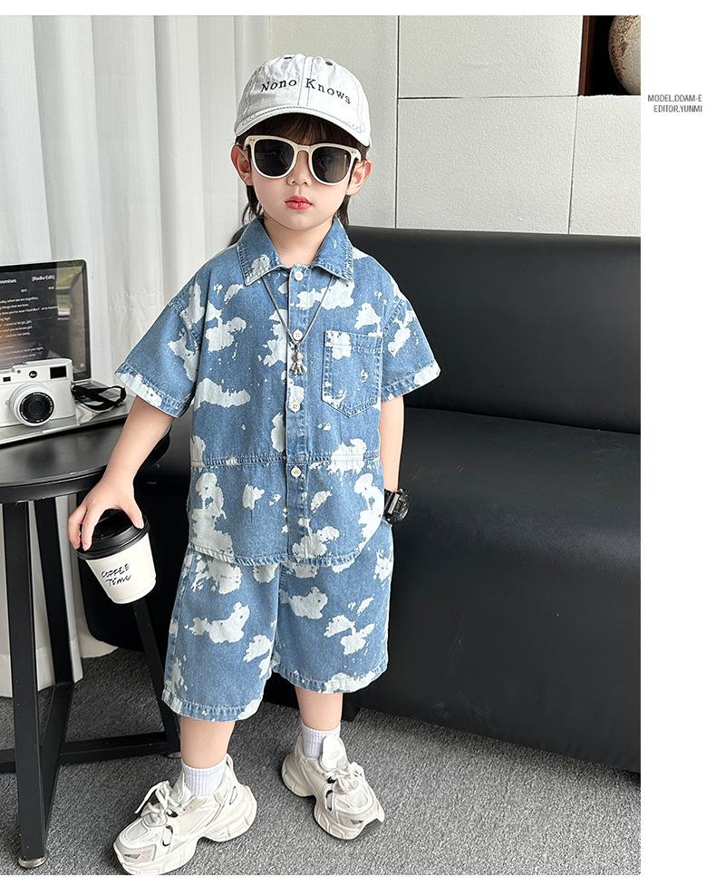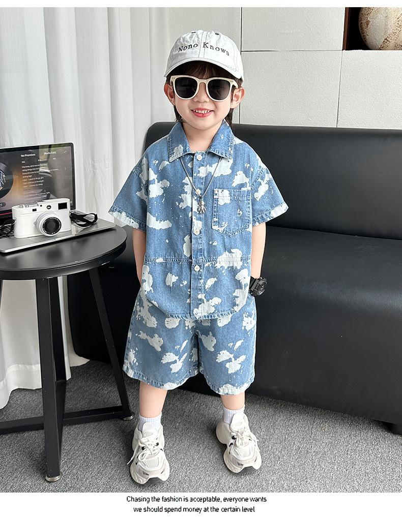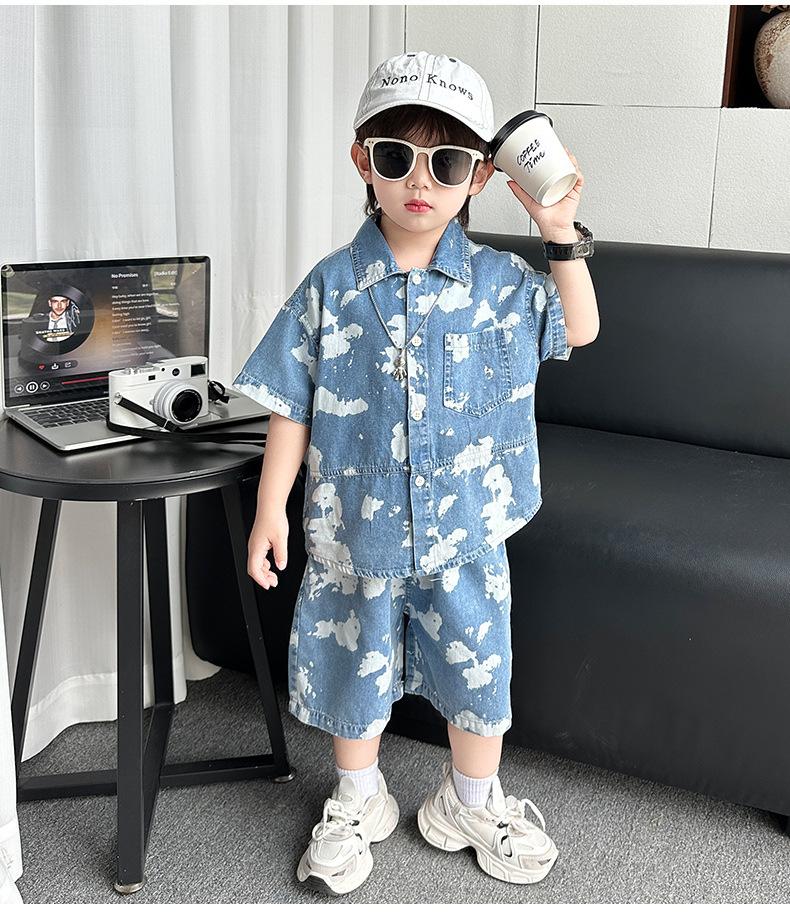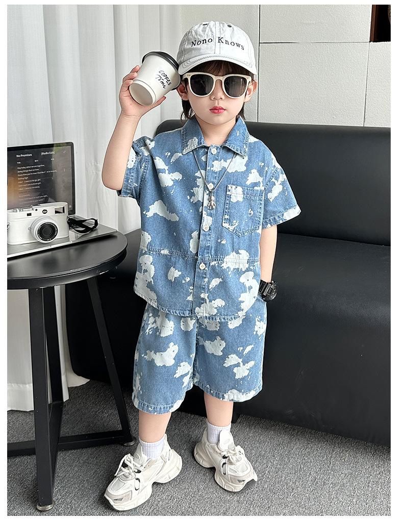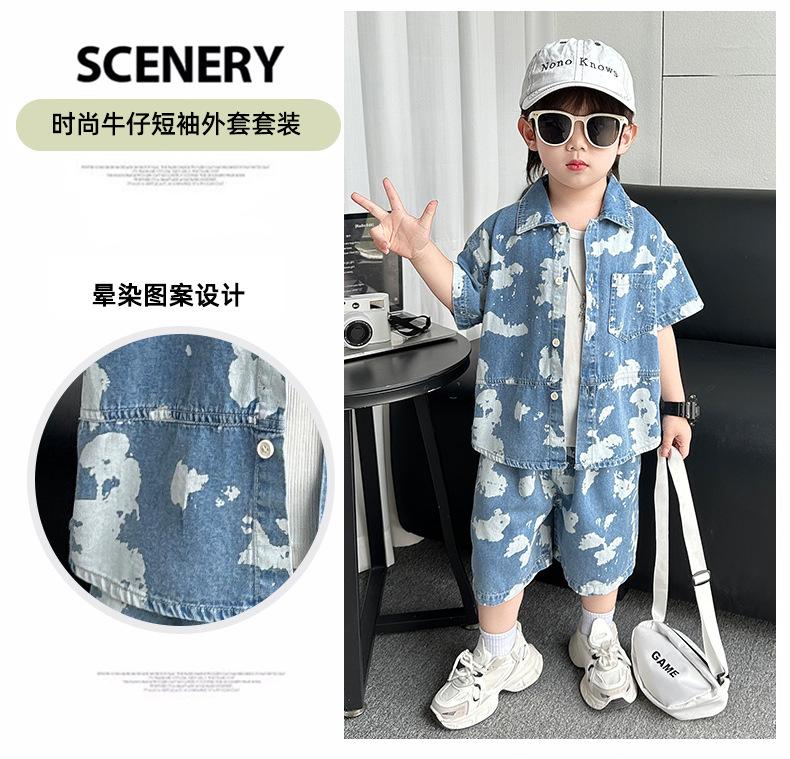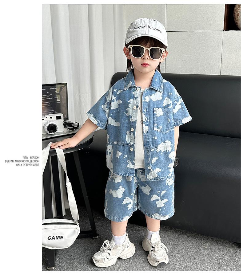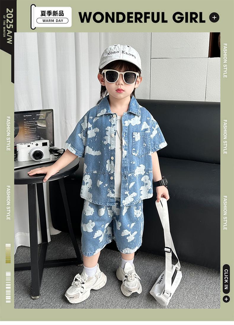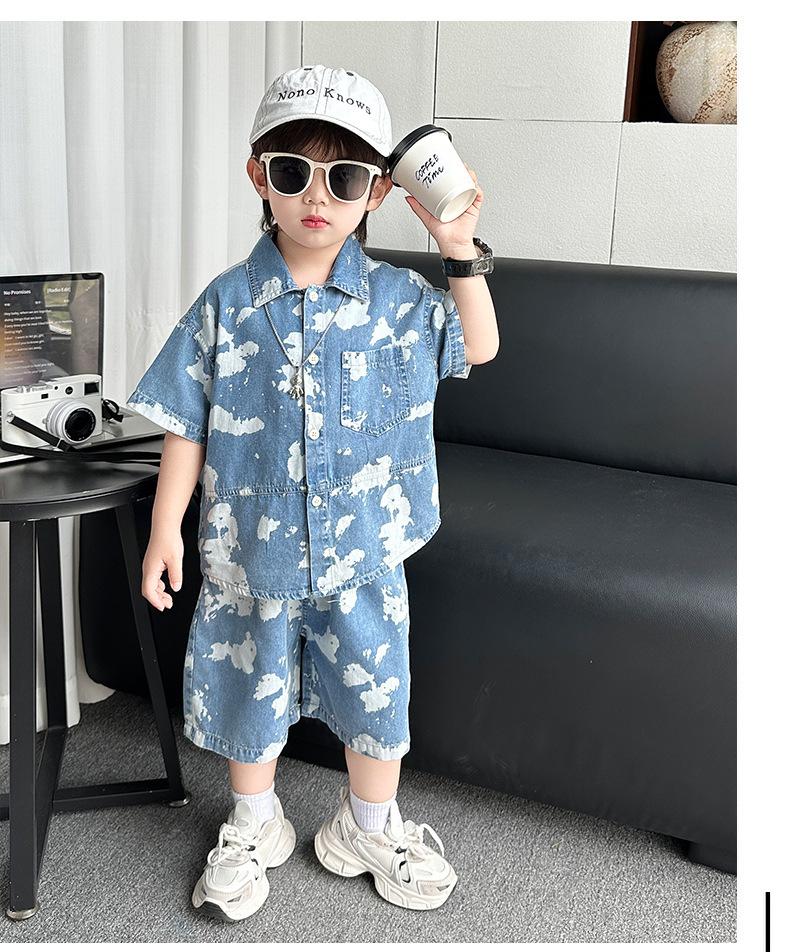 Traje de Verano de Manga Corta para Niño 2025 Nuevo Fresco y Guapo Ropa de Mezclilla para Niños Ropa de Moda para Niños Conjunto de Dos Piezas de Verano