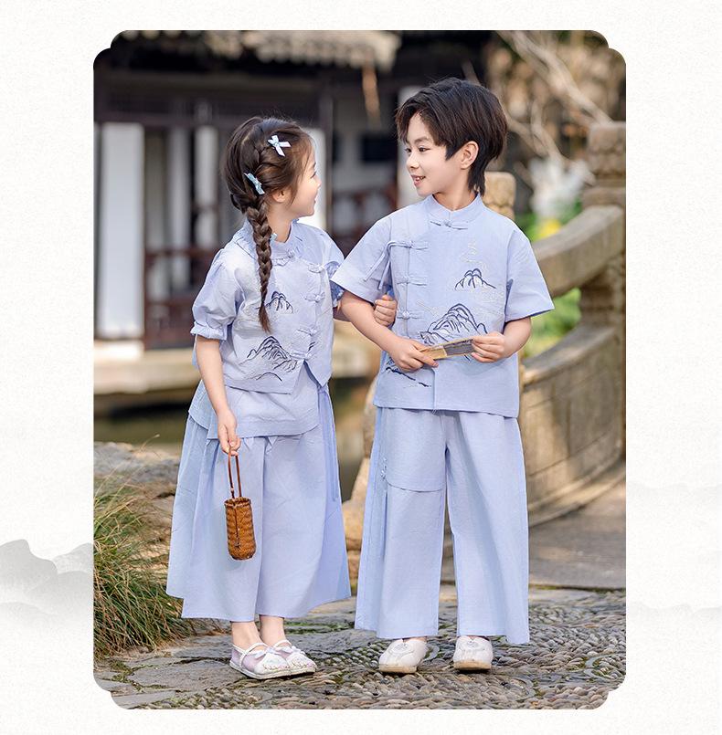 Hanfu de Verano para Niño Estilo Chino Diario de Alta Gama Conjunto Traje Tang para Niña Estilo Antiguo Chino para Niños Disfraz de Actuación para el Día del Niño