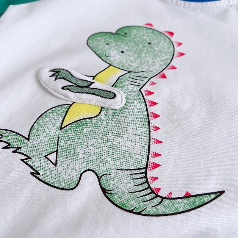Light blue x raglan dinosaur short sleeve suit, Yellow x raglan dinosaur short sleeve suit