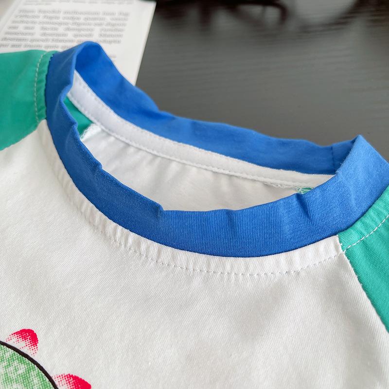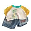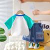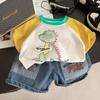 Traje de ropa de verano para niños 2025 Verano Nuevo Ropa de bebé Estilo occidental Dibujos animados Niños Manga corta Delgado Dos piezas Moderno