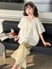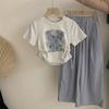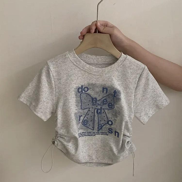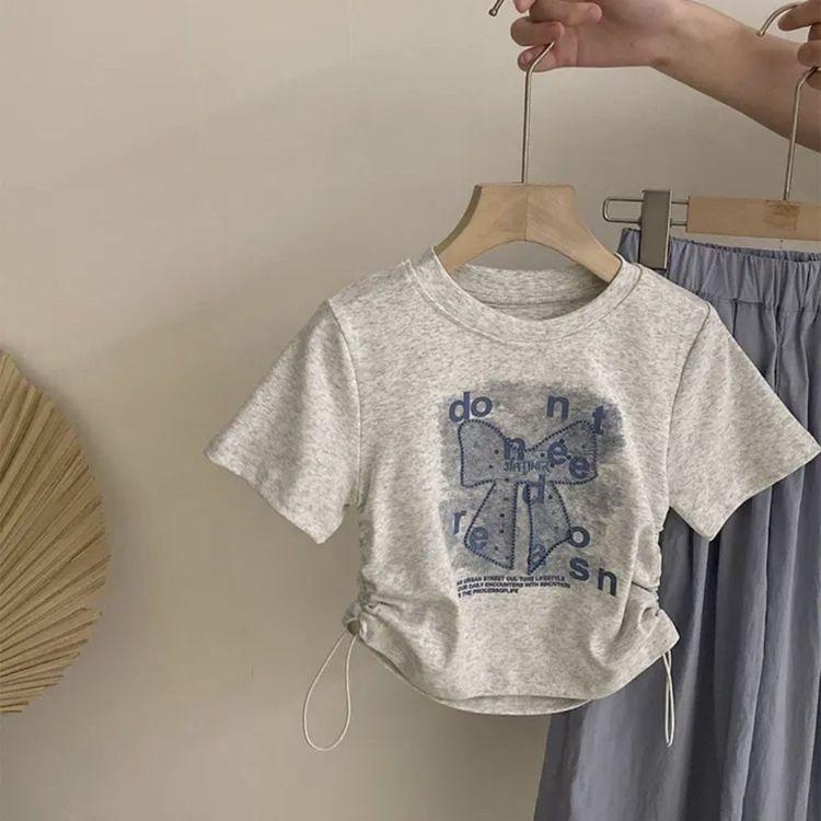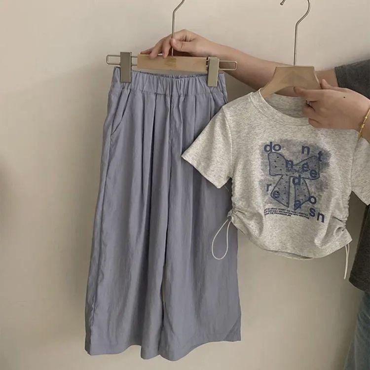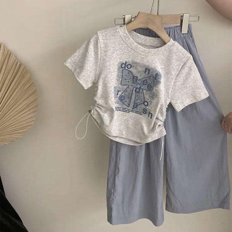 Traje para Niñas 2025 Nuevo Verano Niñas Medianas y Grandes Camiseta de Manga Corta con Lazo de Cordón Pantalones Yamamoto Conjunto de Dos Piezas