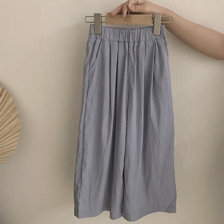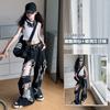 Gray short sleeves, Blue wide leg pants, Two-piece set