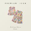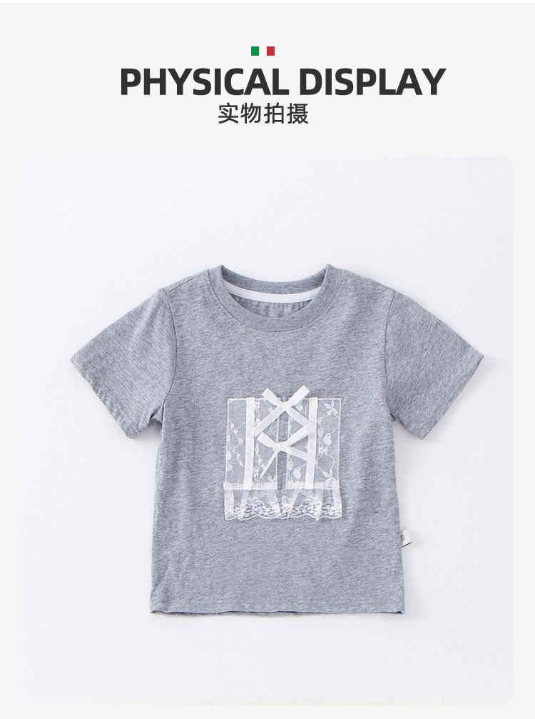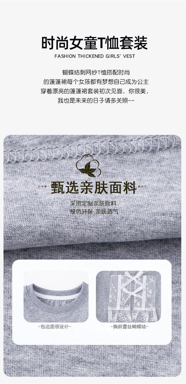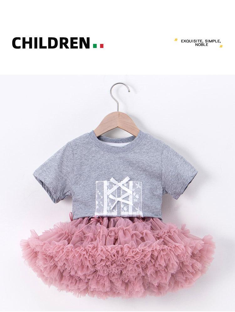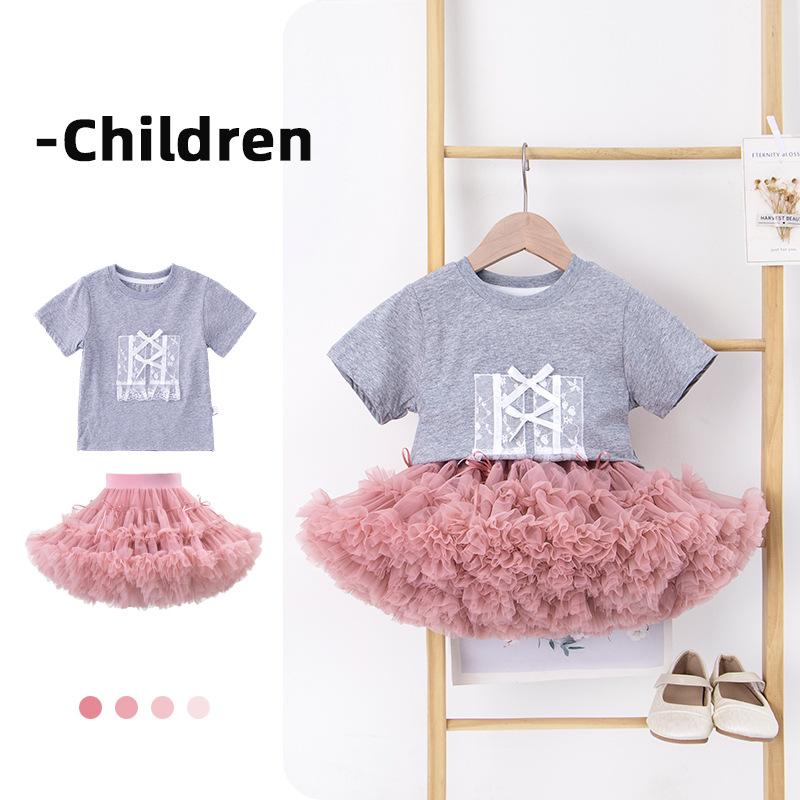 Leaf Clothing Traje de camiseta de manga corta de encaje dulce para niña 2025 Verano Conjunto de dos piezas de falda tutú con lazo para niños