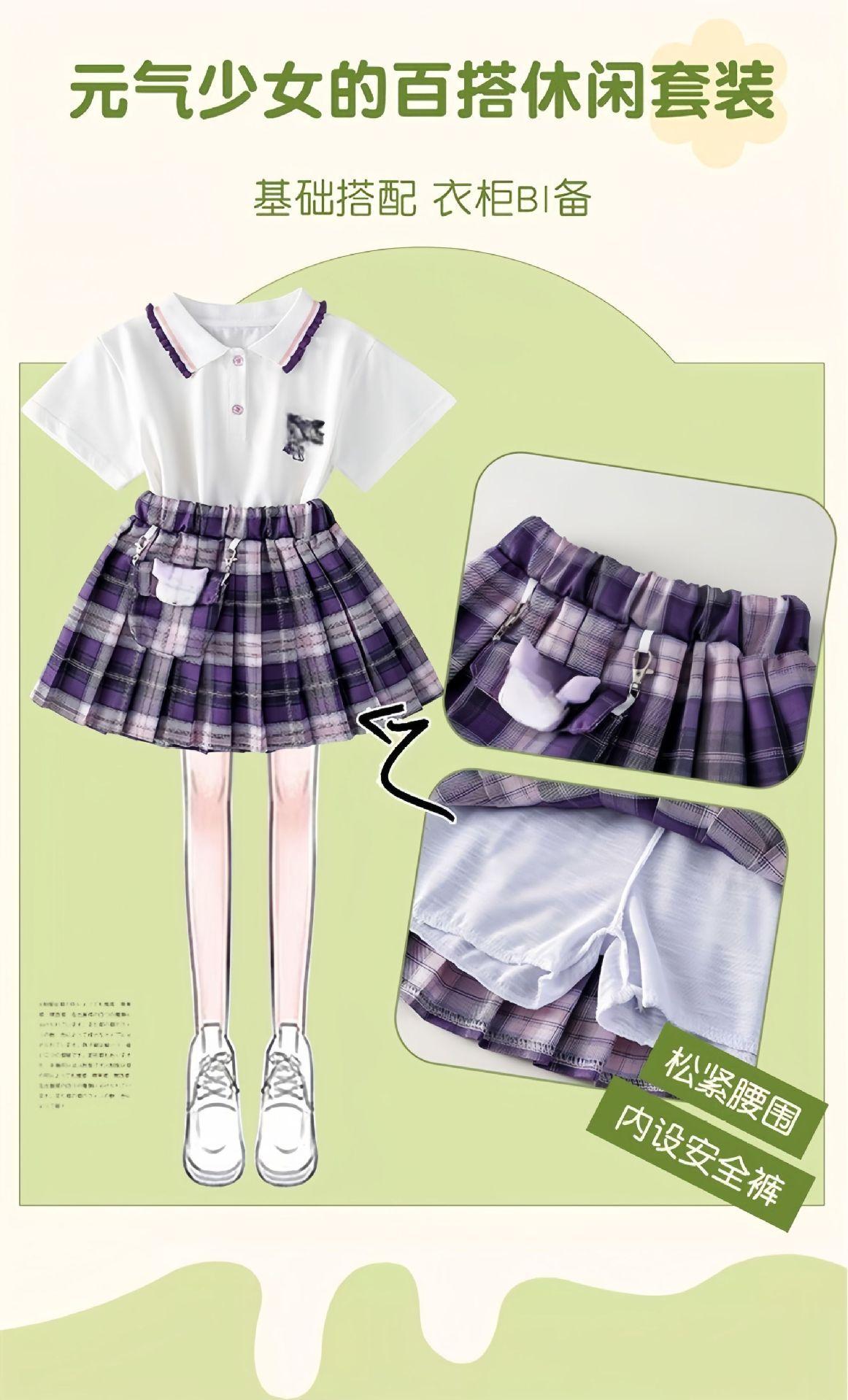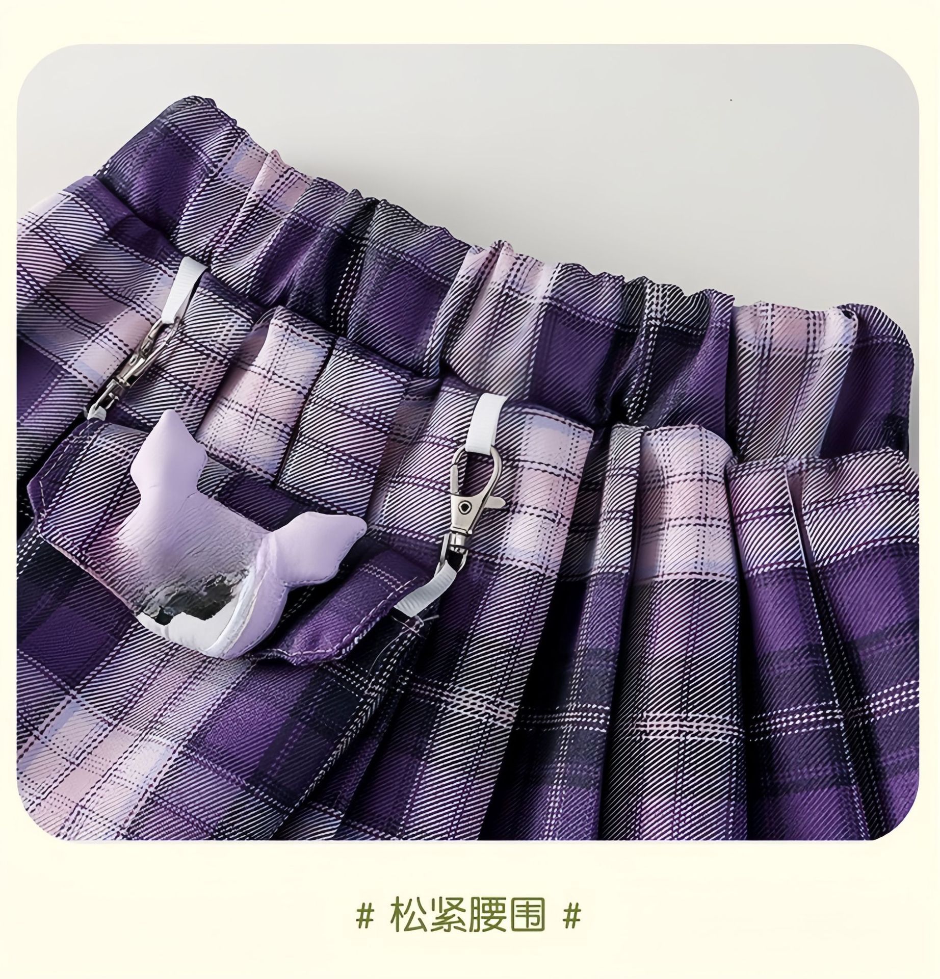 Top + purple skirt, Purple socks, Kuromi headdress, Long sleeve kuromi