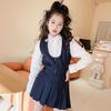 Traje de estilo universitario para niñas Verano 2025 Nuevo estilo Estilo occidental Vestido para niños Camisa de niña Falda plisada JK Conjunto de dos piezas