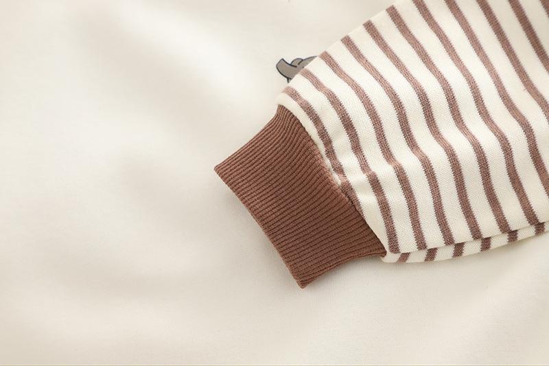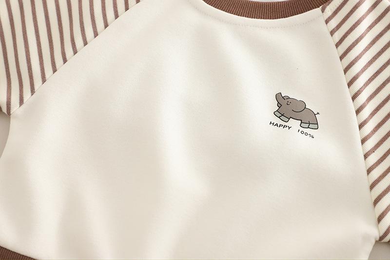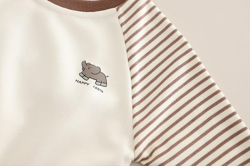 Brown 25q08-elephant striped long-sleeved two-piece set, Bean green 25q08-elephant strip long sleeve two-piece...