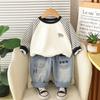 Traje de Otoño para Niño 2025 Nuevo Traje de Primavera y Otoño para Niños y Bebés Suéter de Manga Larga para Bebé a la Moda Conjunto de Dos Piezas Moderno
