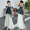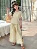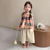 Traje para niñas Verano 2025 Nuevo Top de cuadros de estilo occidental de verano para niñas Pantalones de verano para niños Conjunto de dos piezas