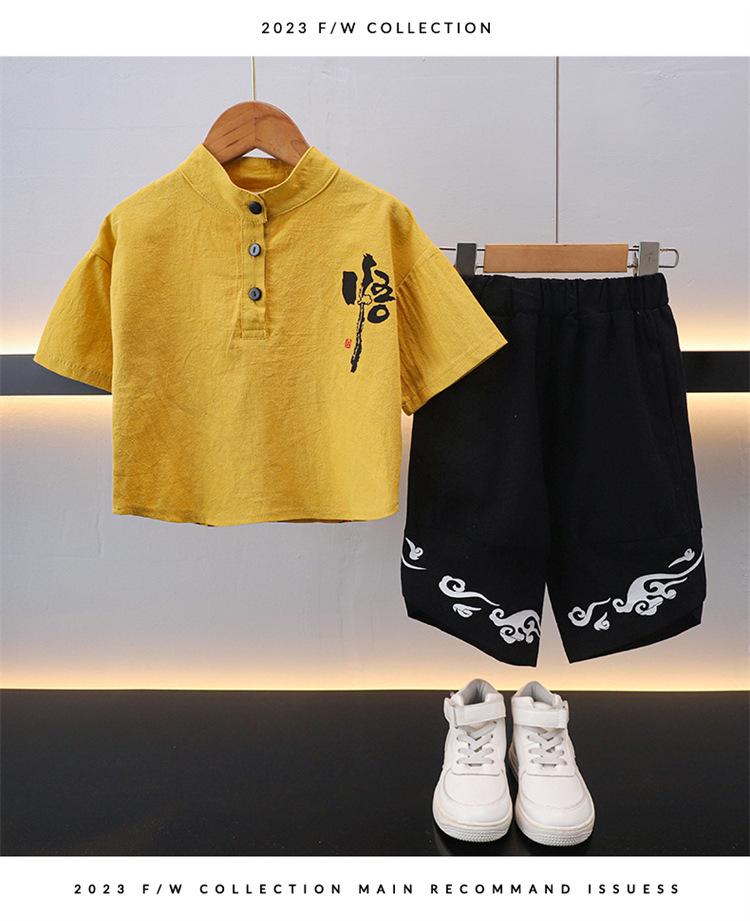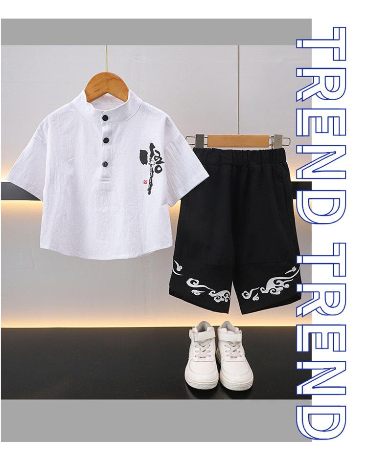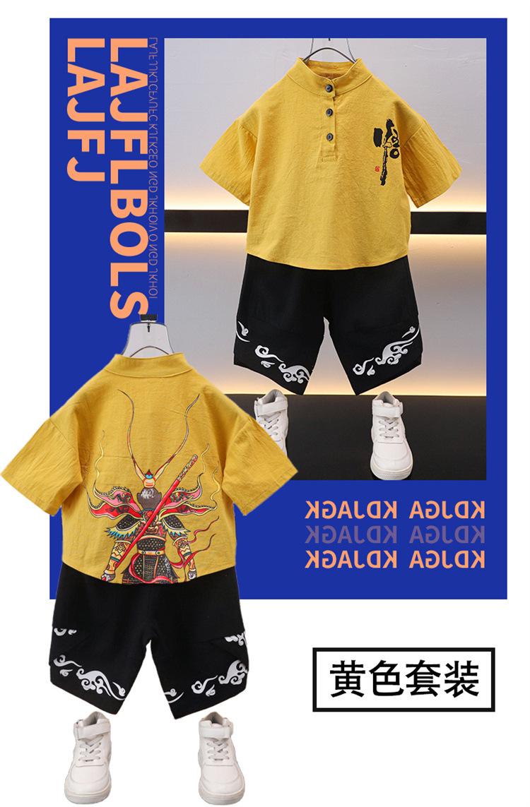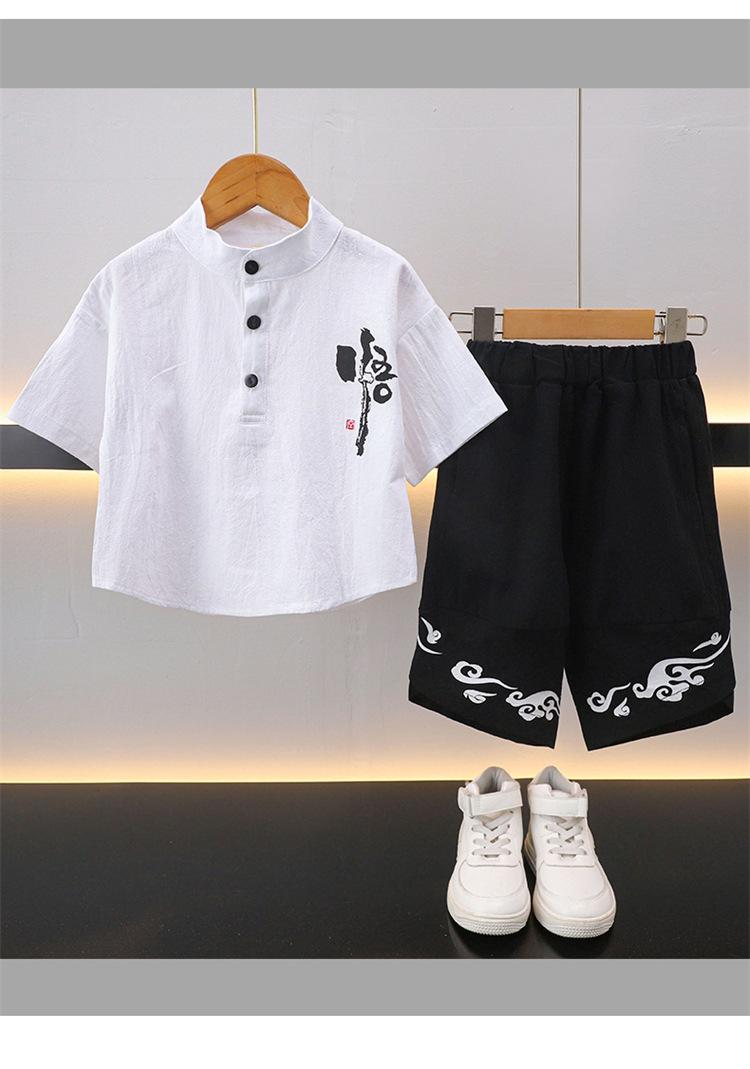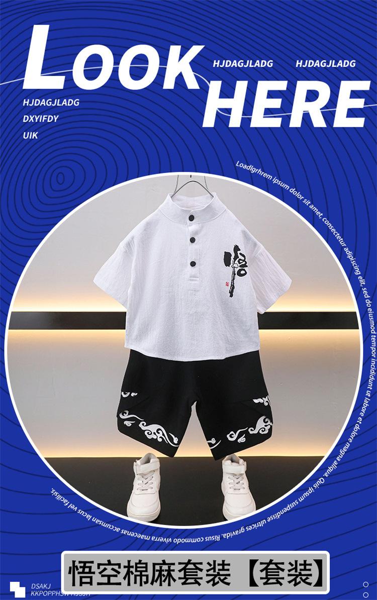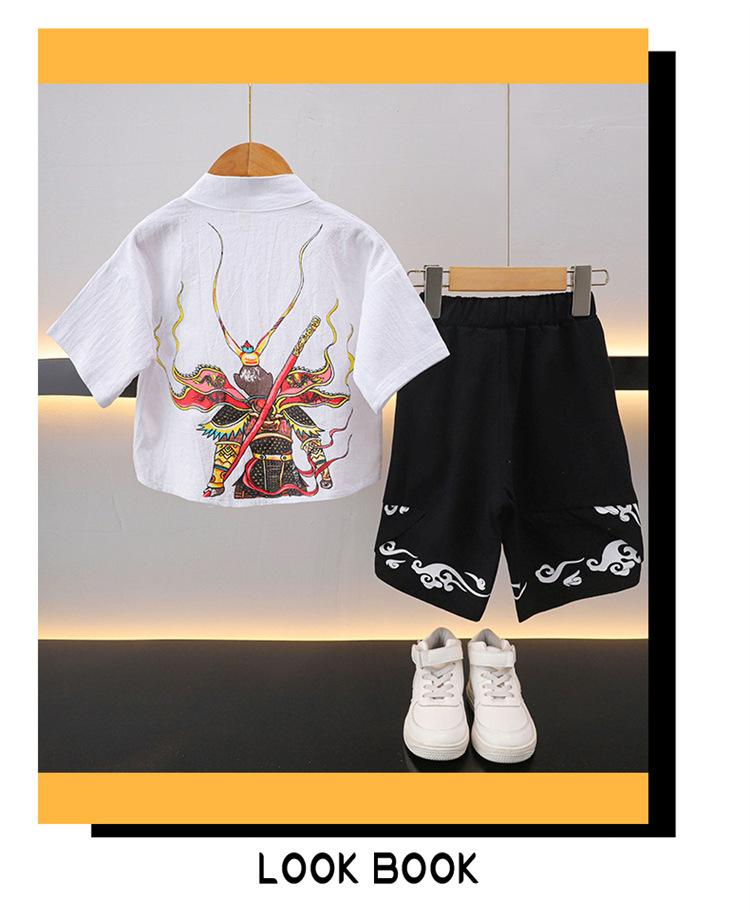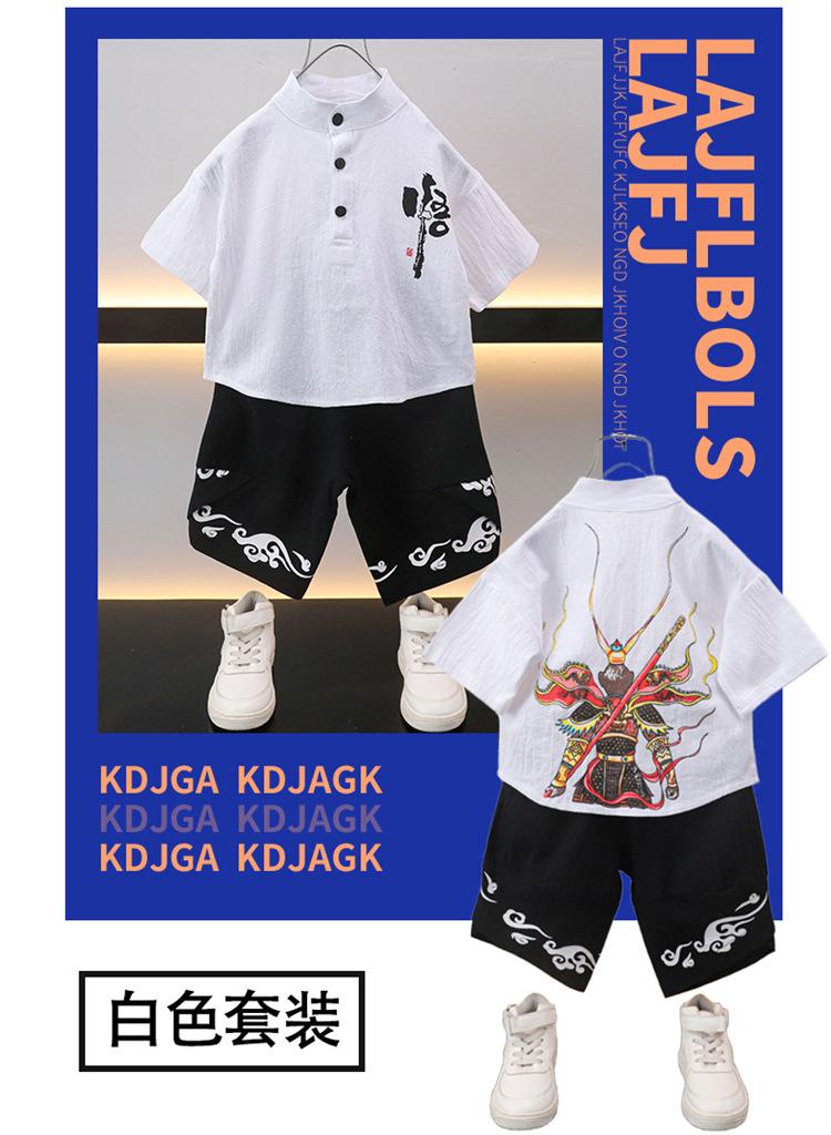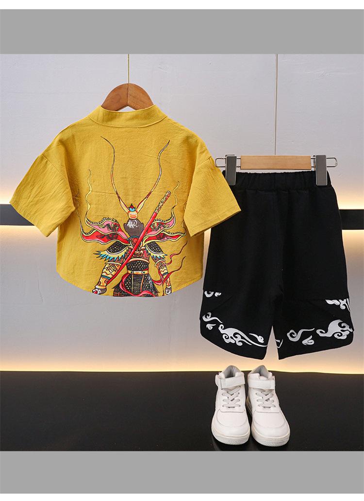 Conjunto de Verano para Niños a la Moda Goku Manga Corta 2025 Nuevo Verano Estilo Chino Bebé Manga Corta Dos Piezas Hanfu Moderno