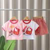 Traje de Verano Pink House 2025 Nuevo Estilo Ropa para Bebé Infantil de Verano de Manga Corta Shorts Conjunto de Ropa Infantil de Dos Piezas