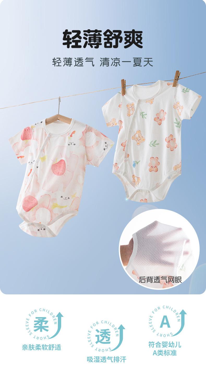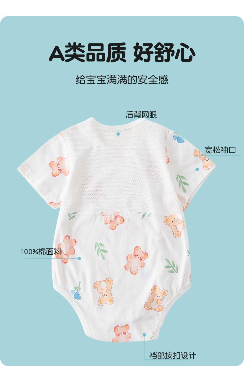 Algodón Puro Manga Corta Envoltorio para Bebé Ropa Pedo Recién Nacido Ropa para Gatear Malla Trasera Fina Bebé Transpirable Ropa de Verano