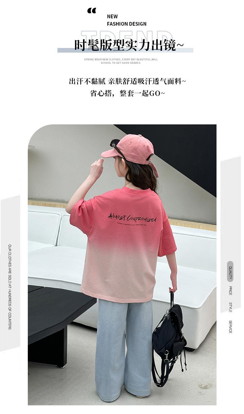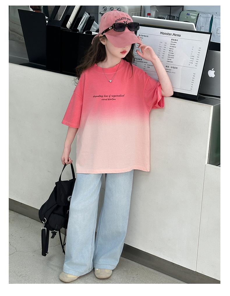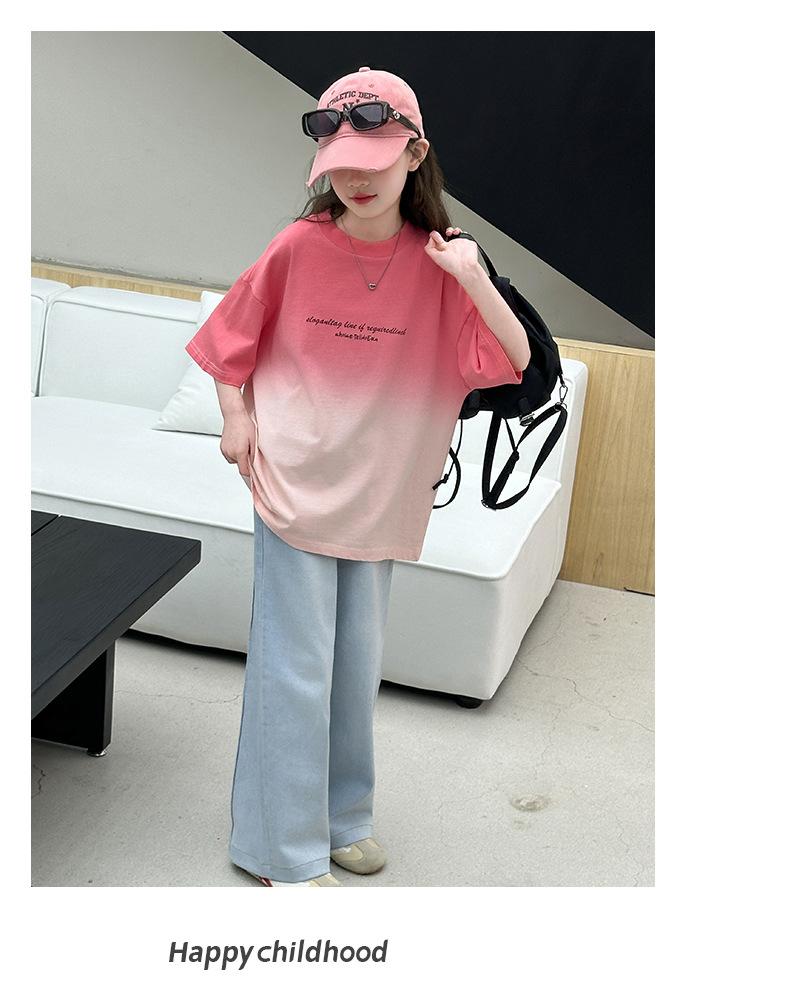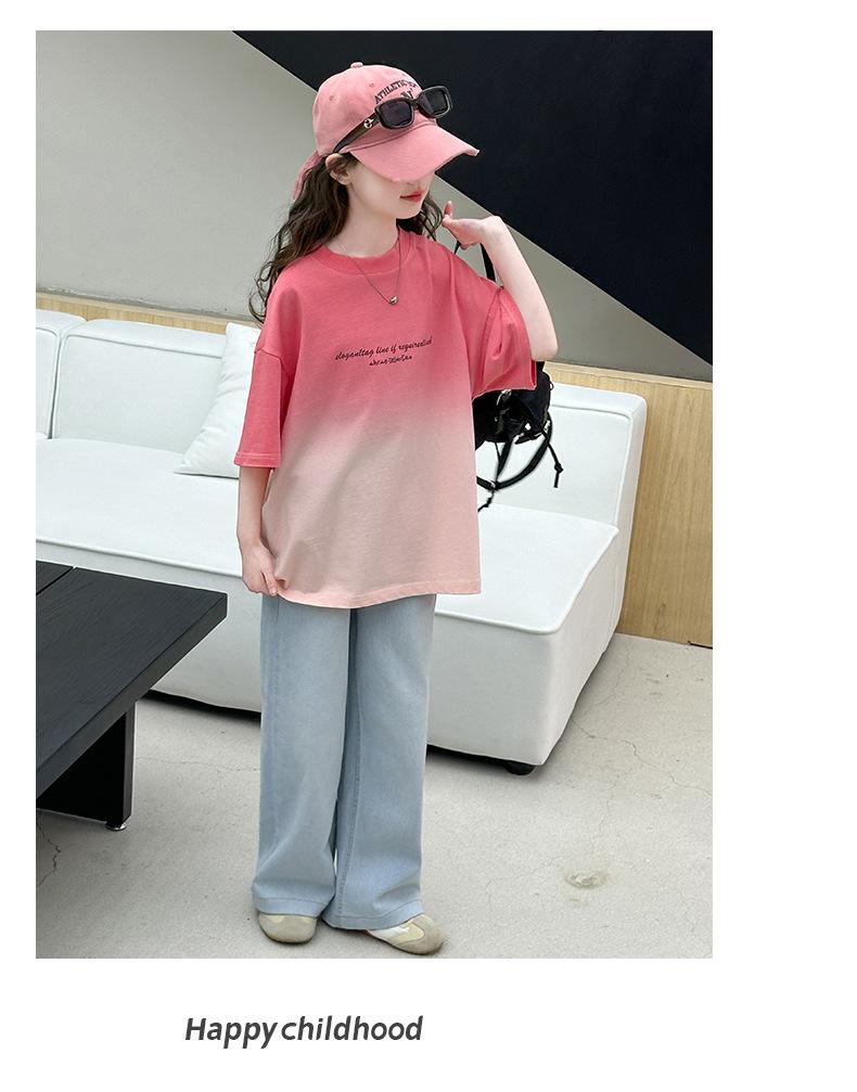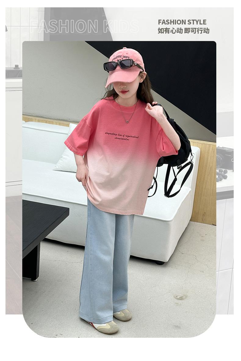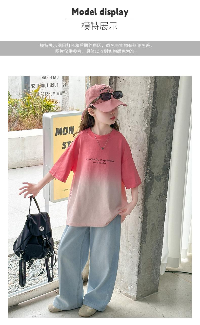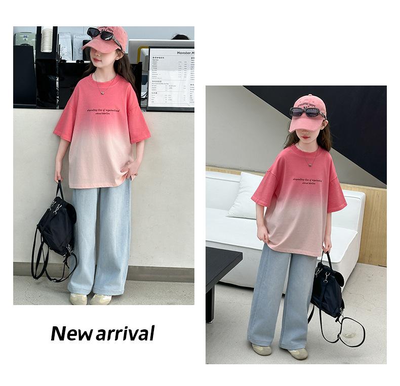 Traje para Niñas Ropa de Verano 2025 Nuevo Estilo Infantil Camiseta de Manga Corta Jeans Delgados de Verano para Niñas Conjunto de Dos Piezas