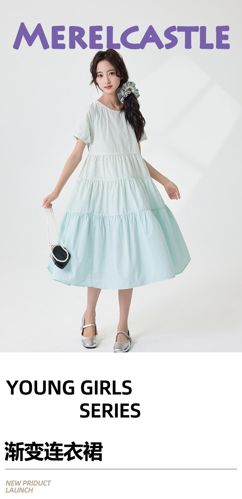 Falda fluida de hada para niñas Verano 2025 Nuevo Vestido de verano para niña de secundaria con degradado súper de hadas