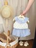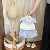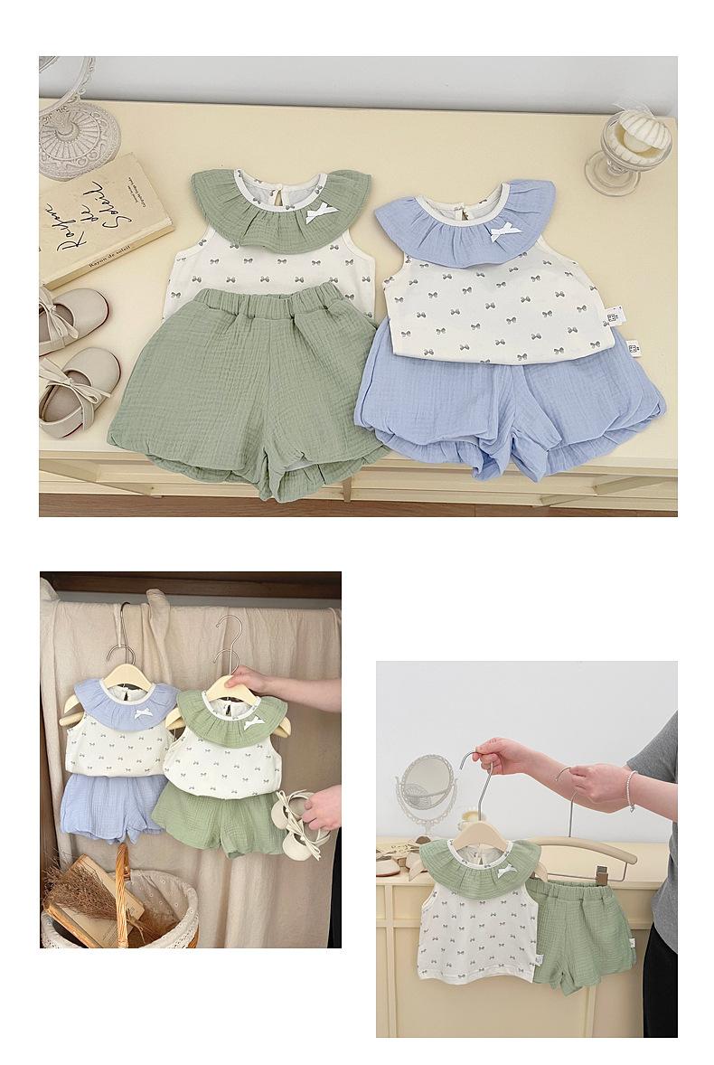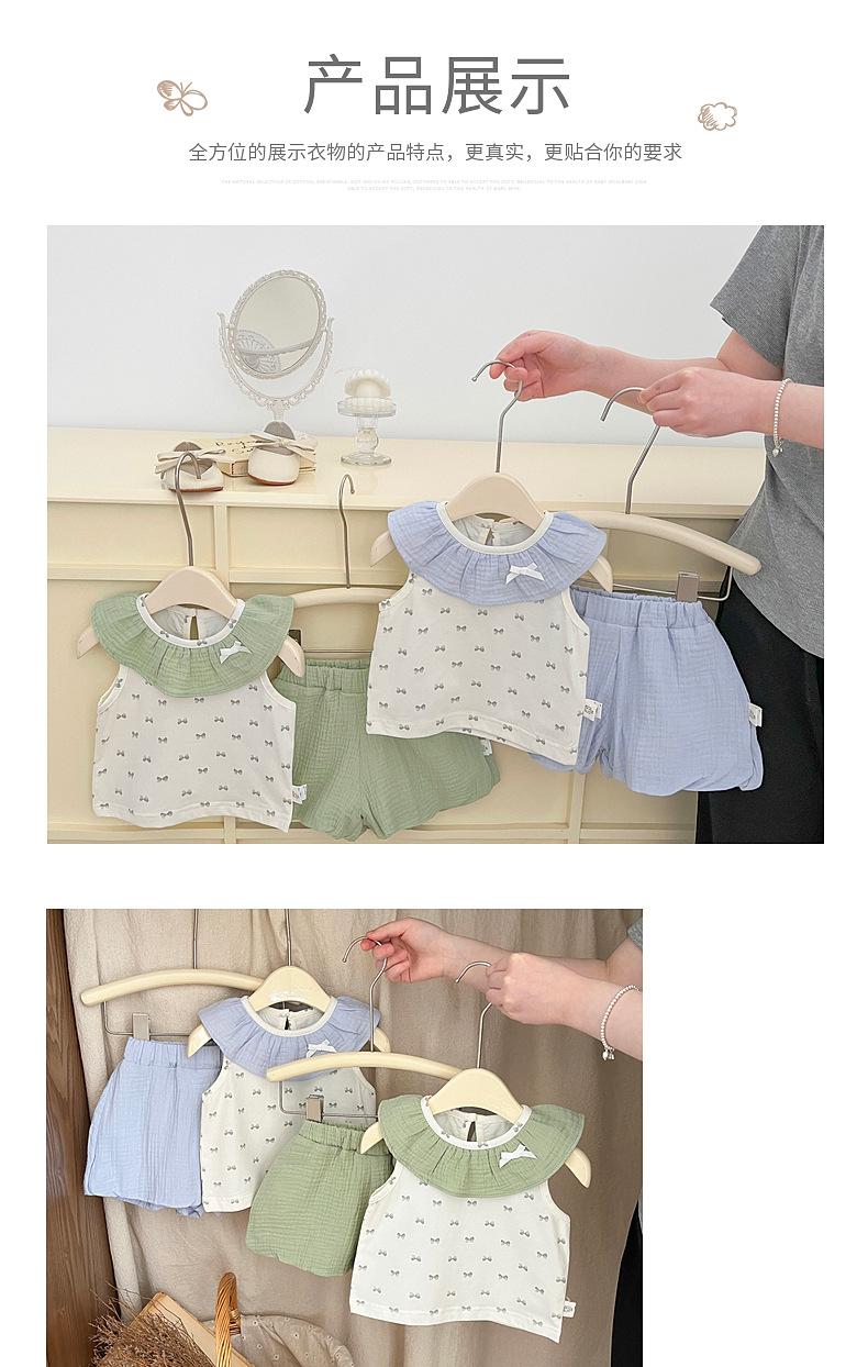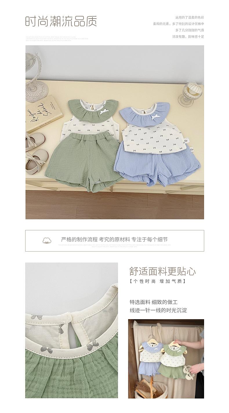 Traje de Verano para Niñas Estilo Coreano Nuevo Cuello de Muñeca Bebé Tirantes Finos Frescos Bebé Shorts Combinables Conjunto de Dos Piezas