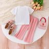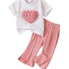 Traje de Verano Lindo y Moderno para Niñas Pequeñas y Medianas Camiseta de Manga Corta con Corazón + Pantalón Rosa
