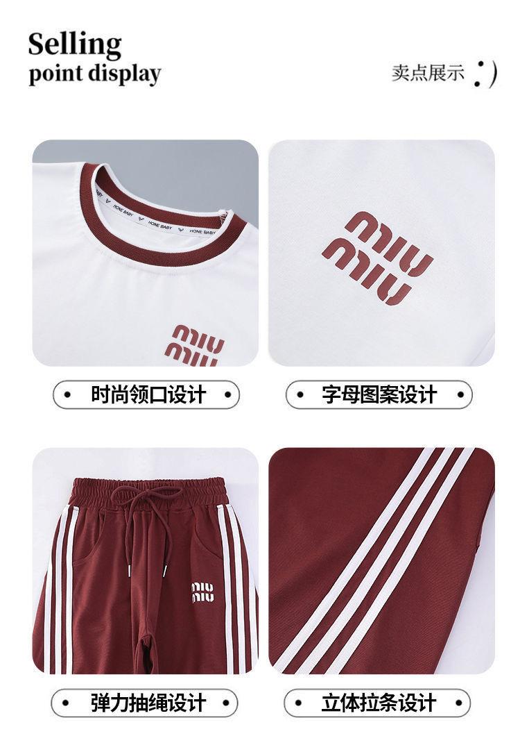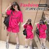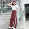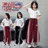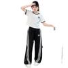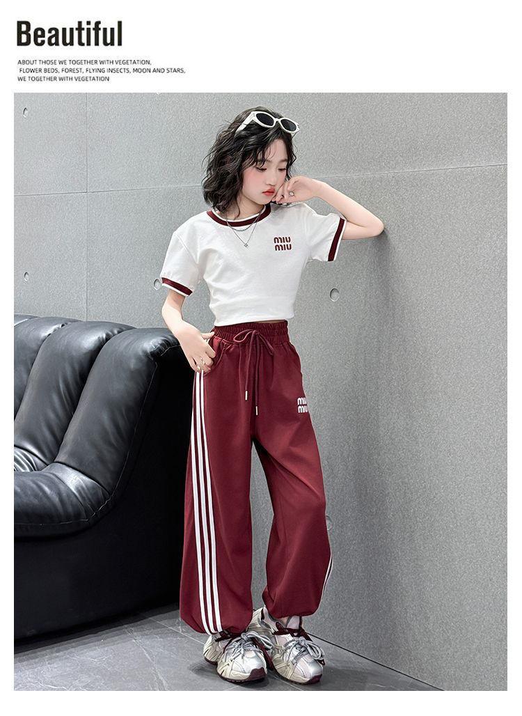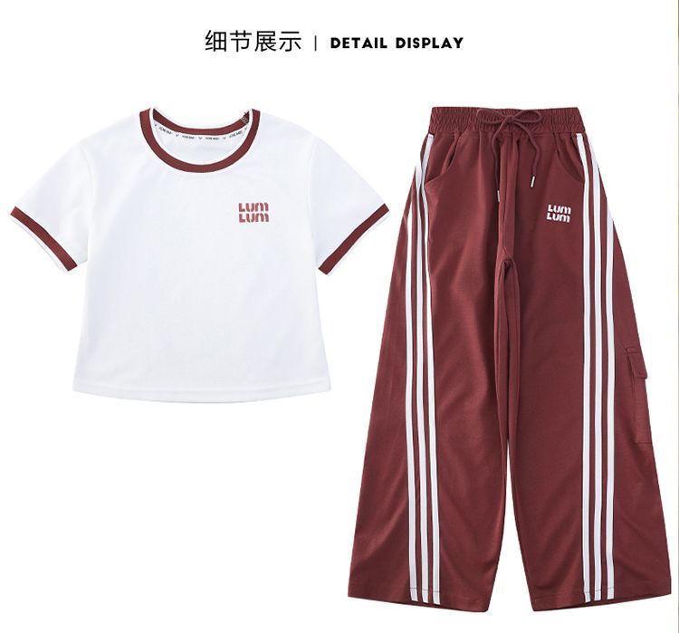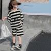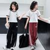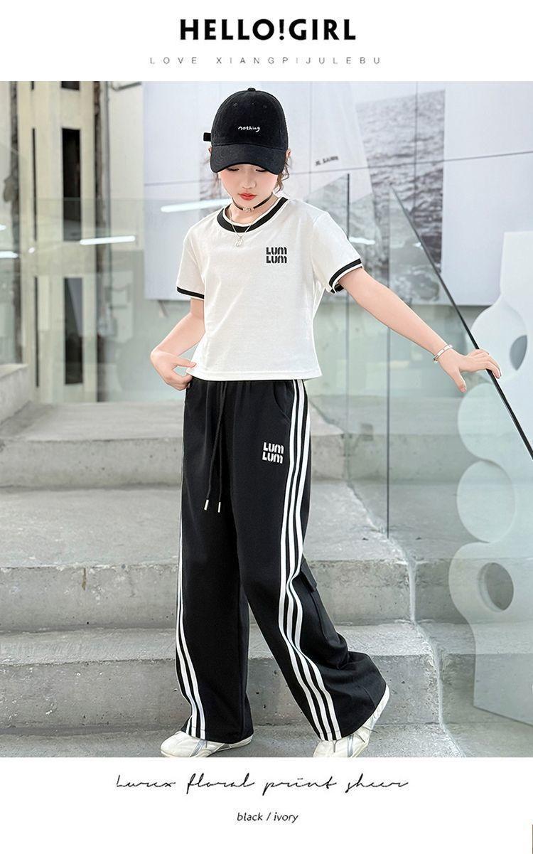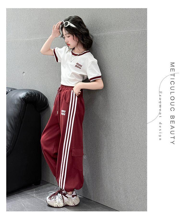 Traje deportivo de rayas estilo coreano para niñas, nuevo top de manga corta con letras de moda de verano y pantalones largos modernos, conjunto de dos piezas para niños mayores