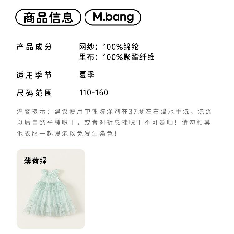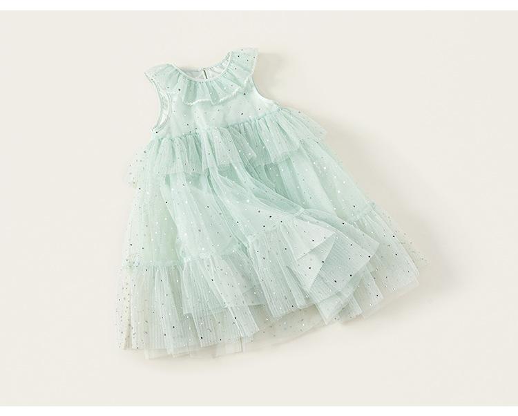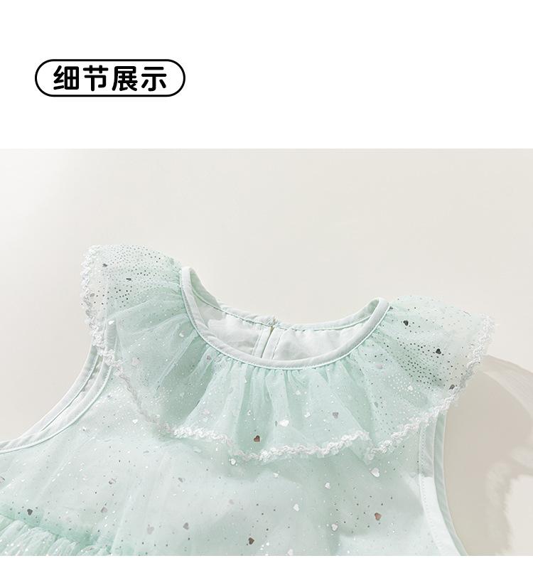Ropa Infantil Yubao Verano Vestido de Hada para Niños Grandes Dulce Vestido de Encaje Vestido de Malla con Lentejuelas Vestido sin Mangas para Niñas