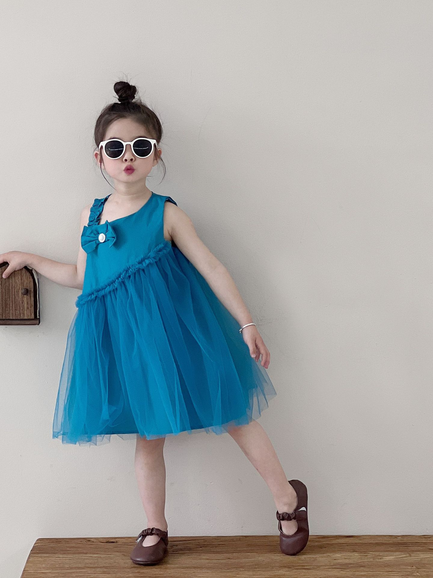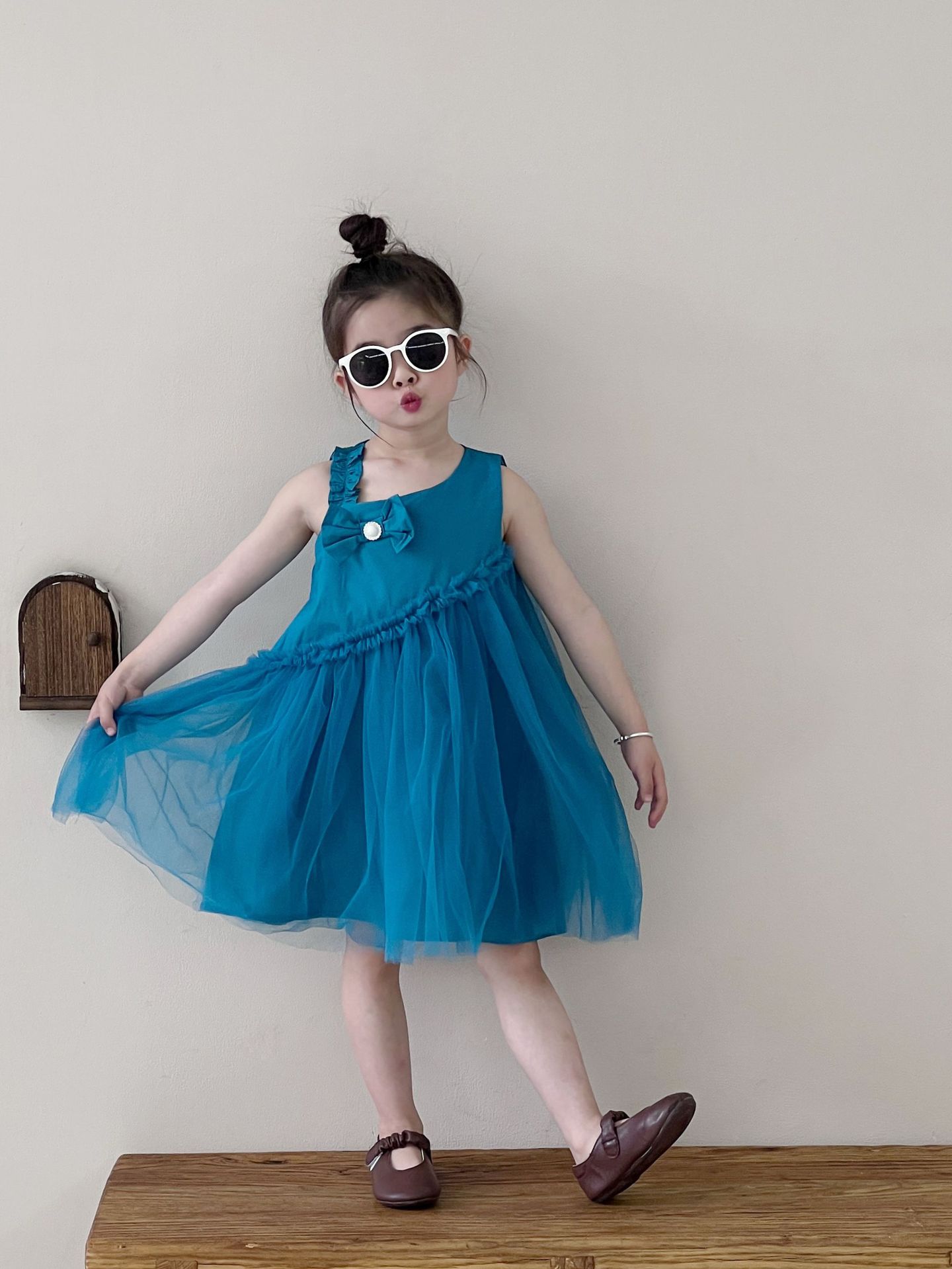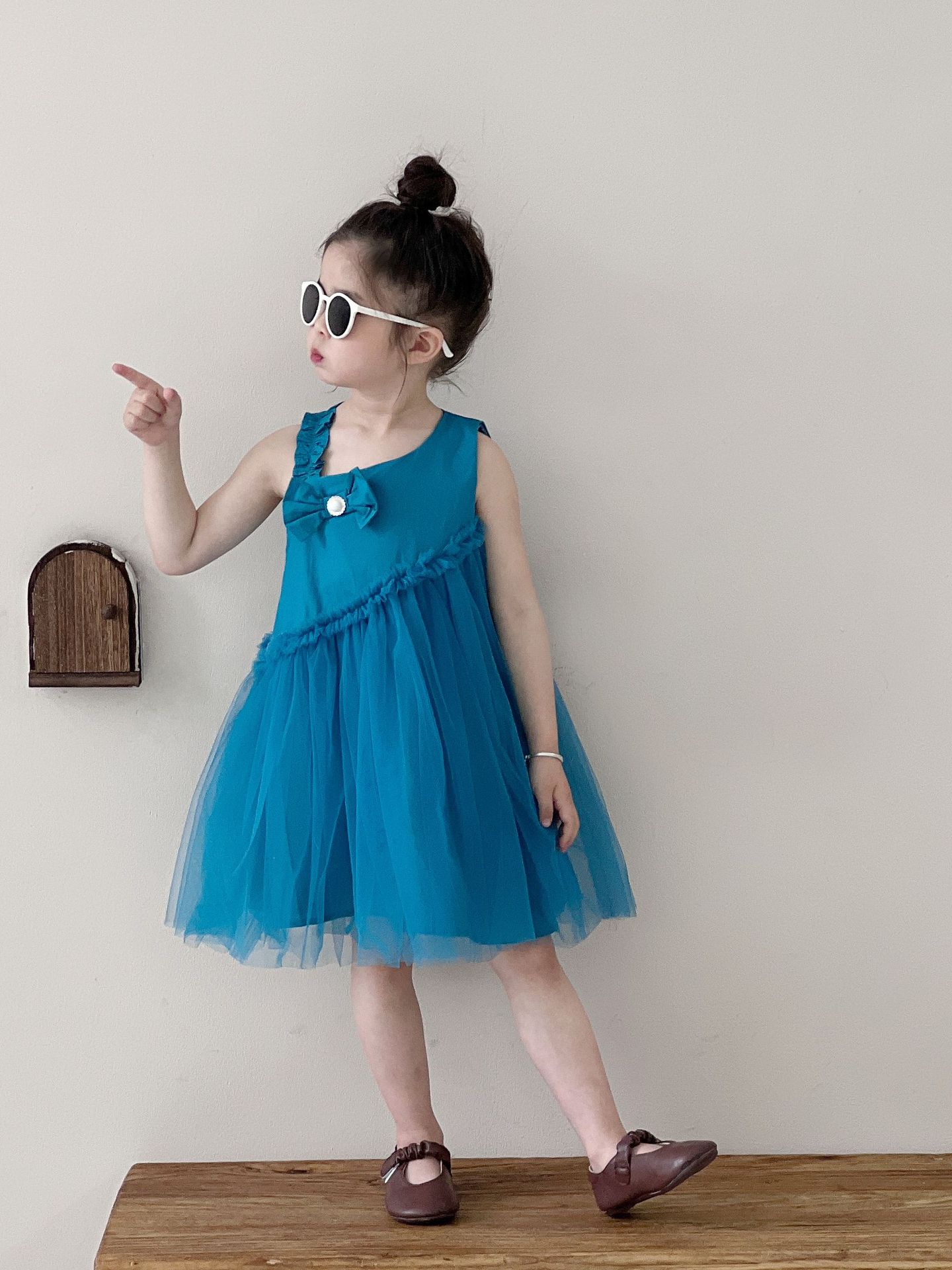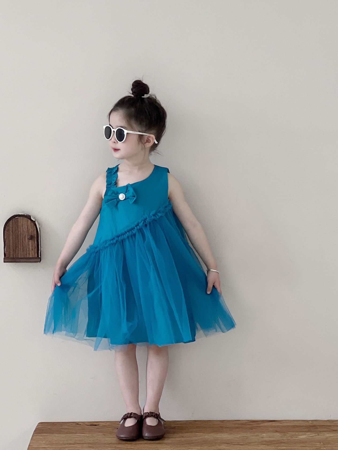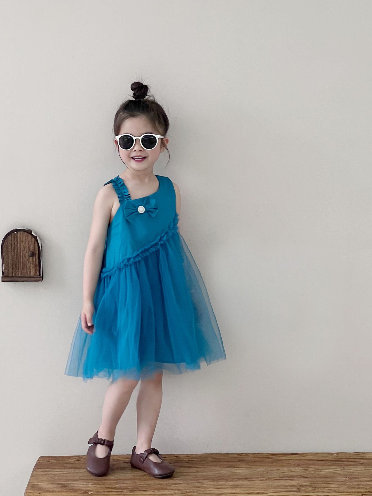 Vestido Chaleco para Niñas Verano 2025 Nuevo Niños Falda sin Mangas Verano Niñas Malla Costuras Vestido de Princesa