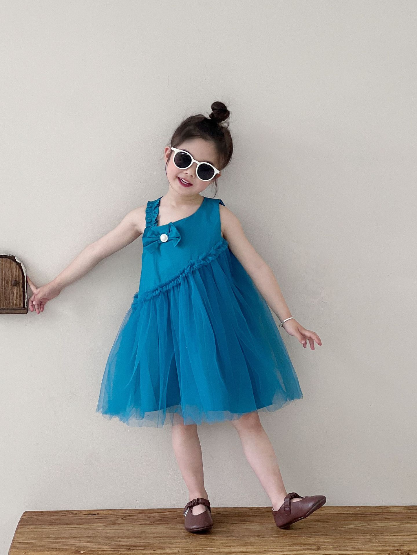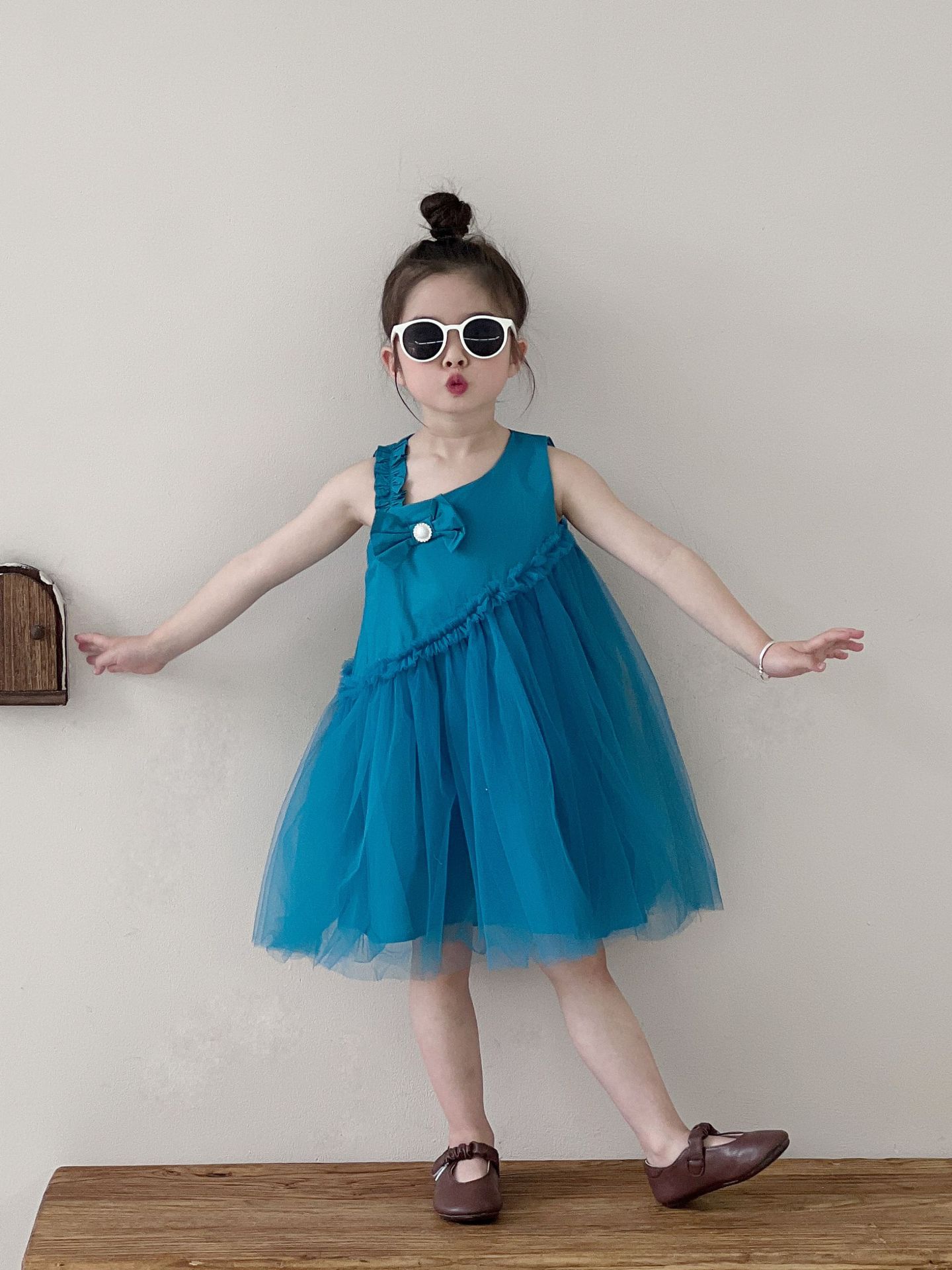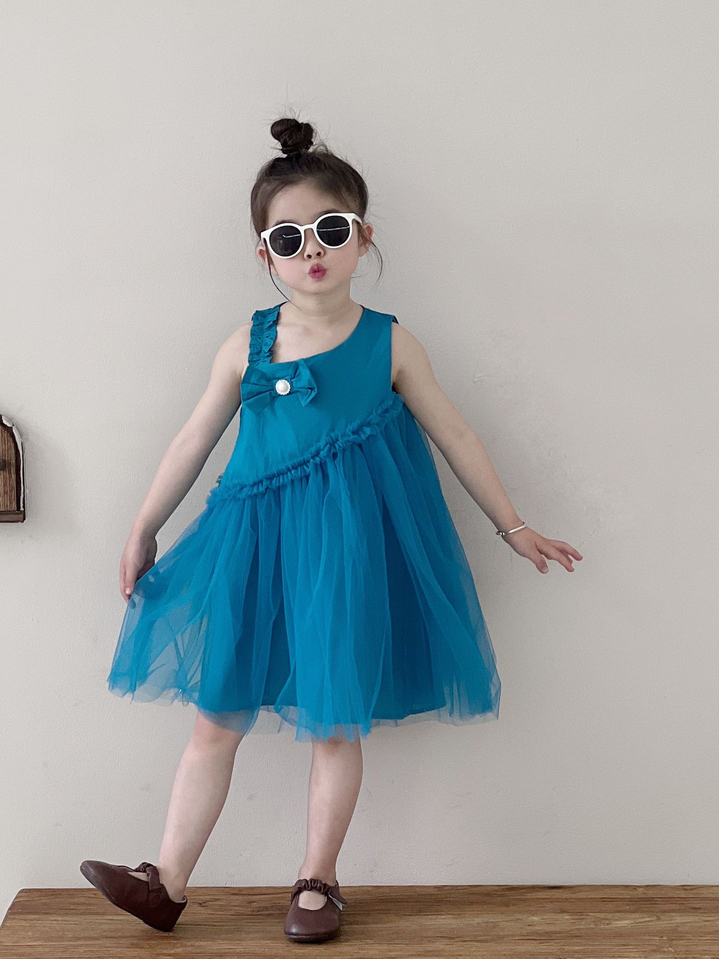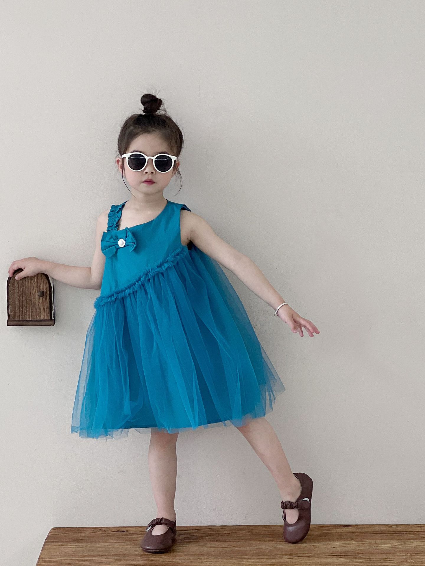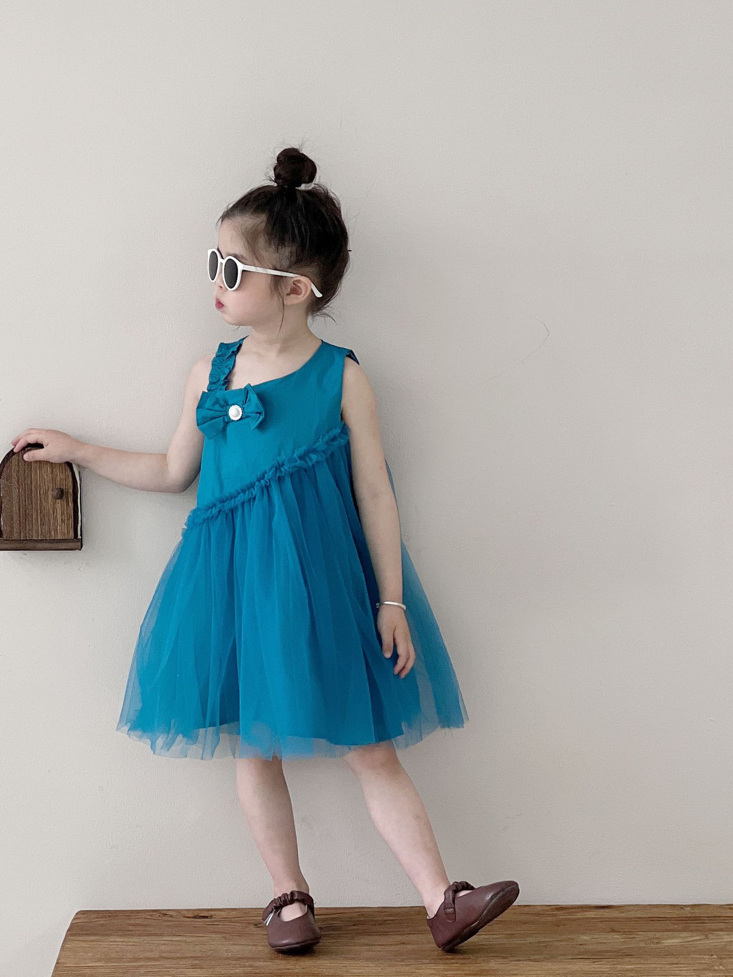 Vestido Chaleco para Niñas Verano 2025 Nuevo Niños Falda sin Mangas Verano Niñas Malla Costuras Vestido de Princesa