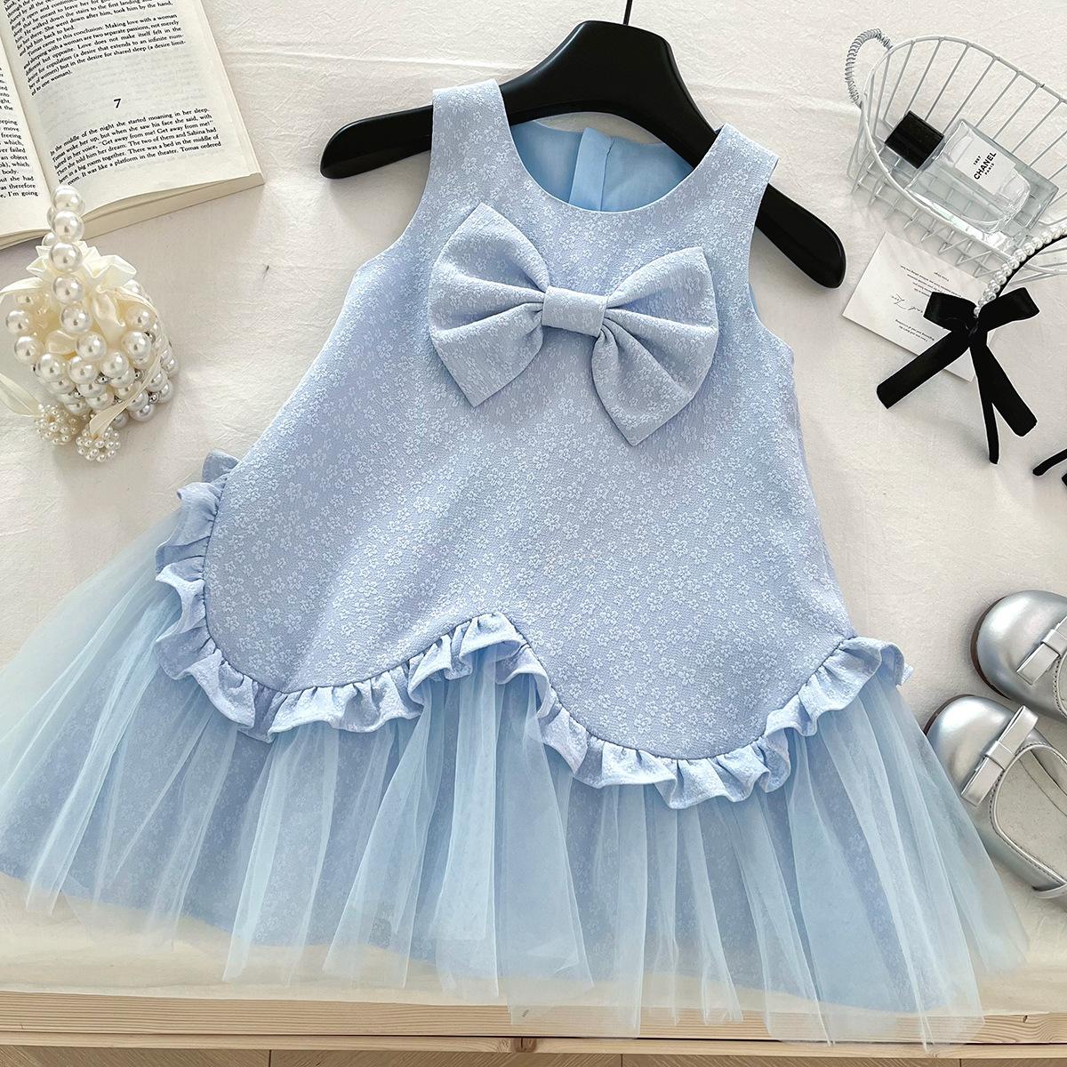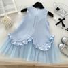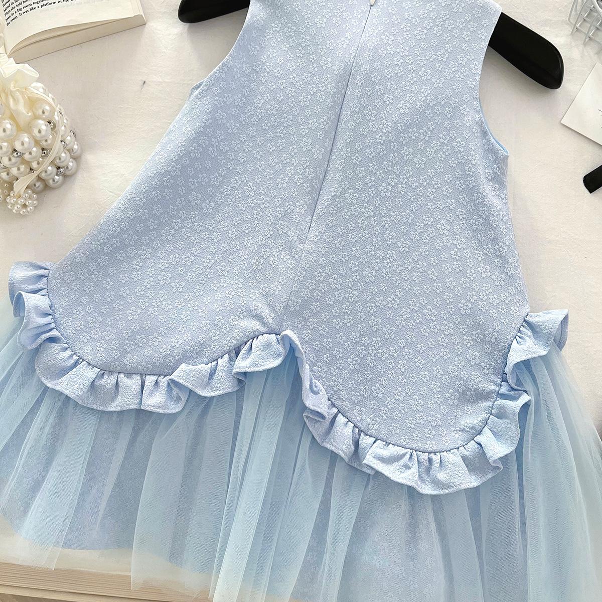 Vestido de verano para niñas 2025 nuevo vestido de costura de malla para niños vestido de algodón de princesa para niña pequeña 17232