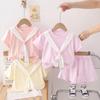 Traje de Verano de Manga Corta para Niñas 2025 Nuevo Estilo Bebé Manga Media Shorts Conjunto de Dos Piezas Ropa Delgada para Bebé