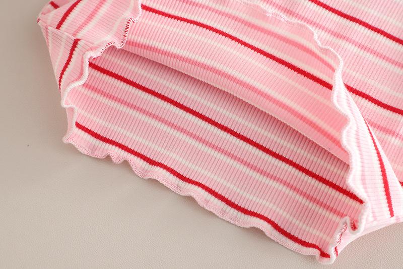 Short sleeve striped tassel suit pink, Short sleeve striped tassel suit beige, Short sleeve striped tassel suit purple