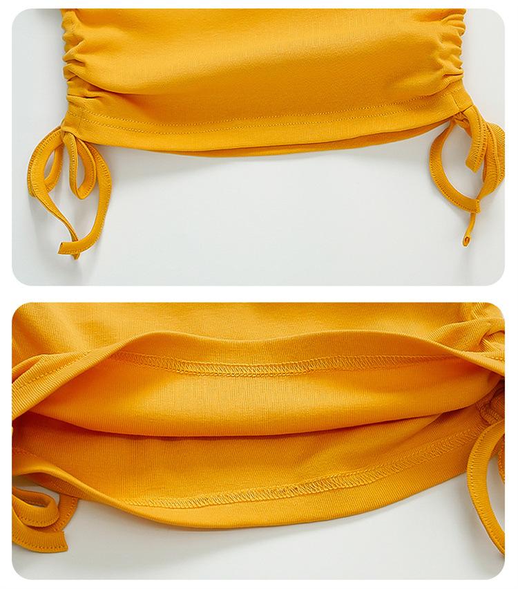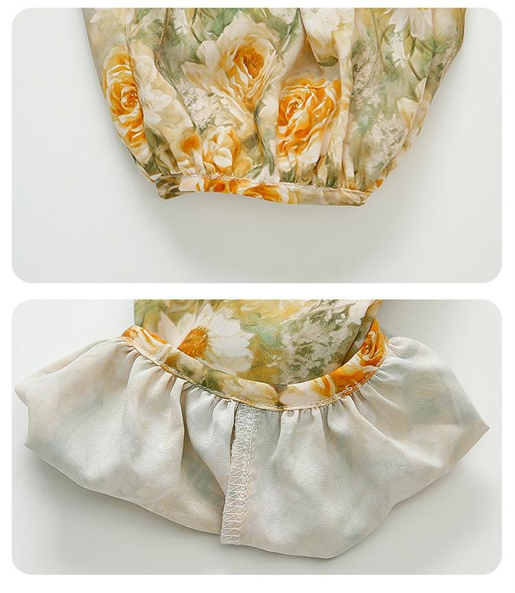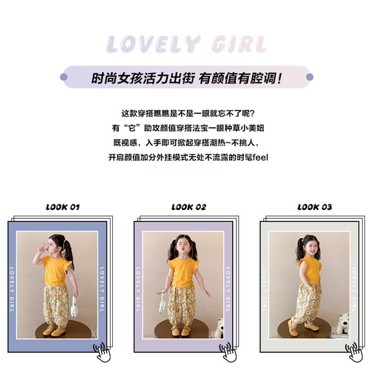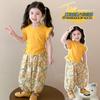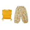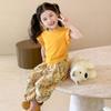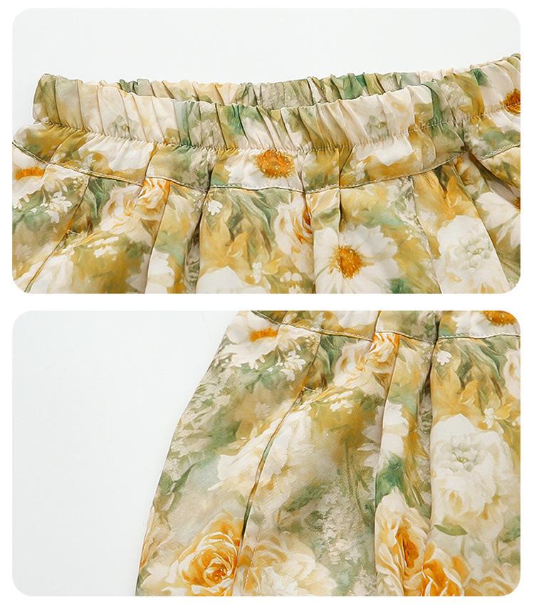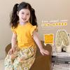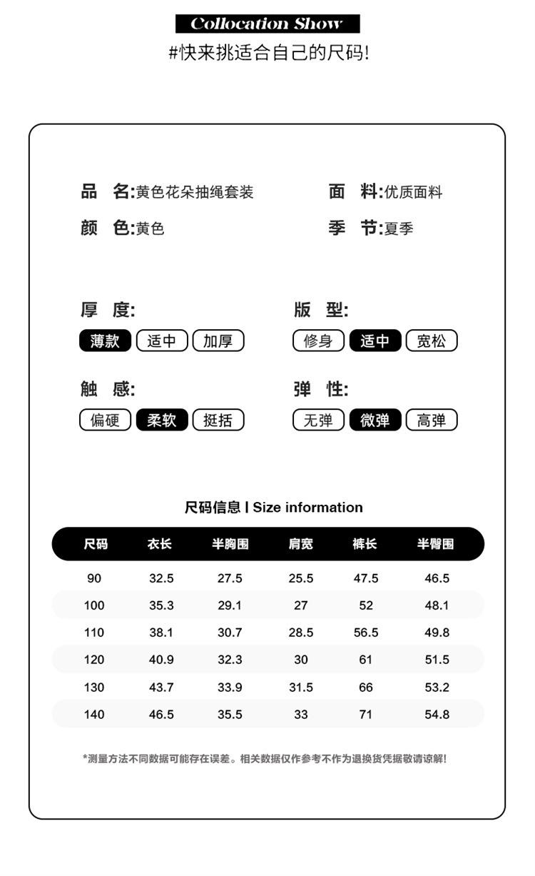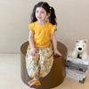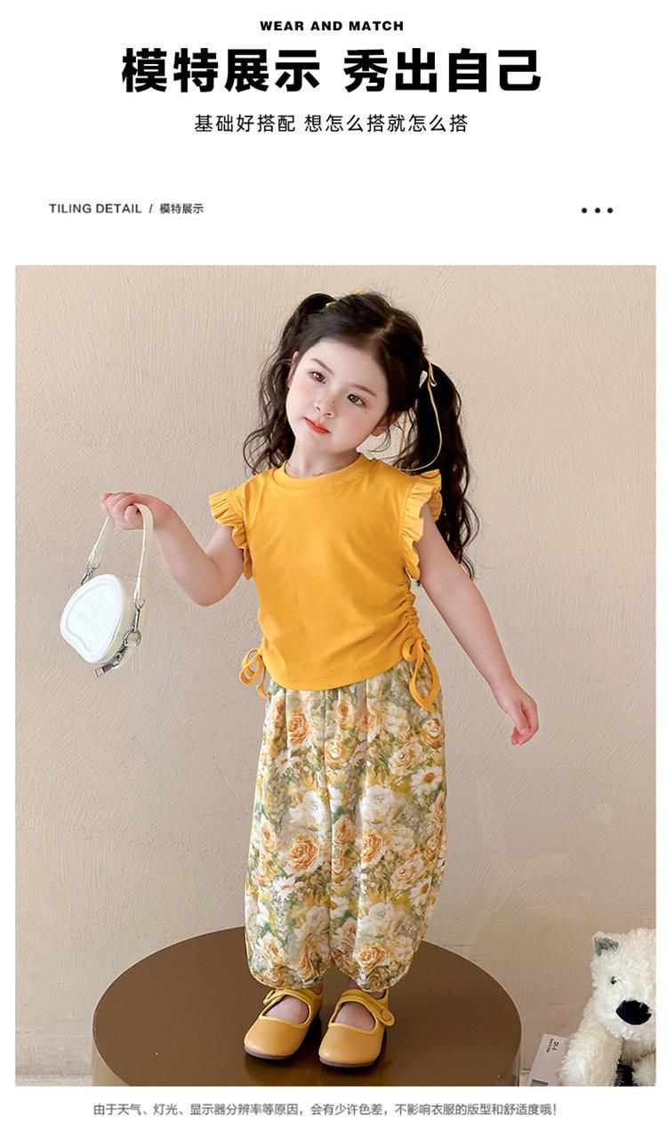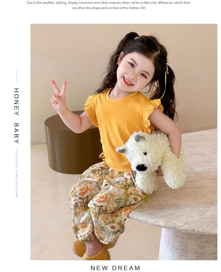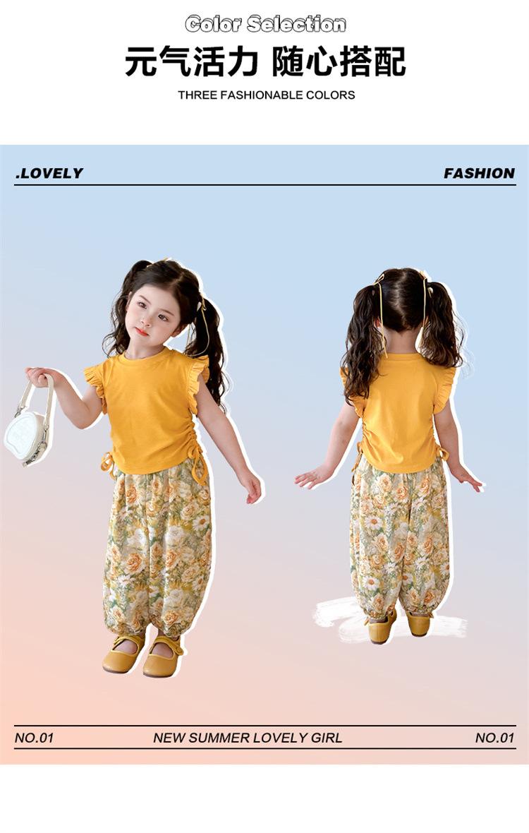 Traje de flores amarillo con cordón para niña 2025 Verano Nueva Moda Niña Elegante Dos piezas Vestido de verano para niños