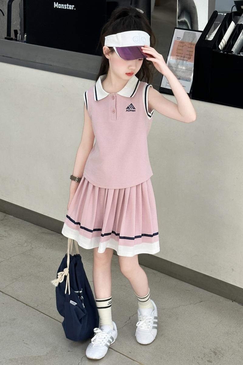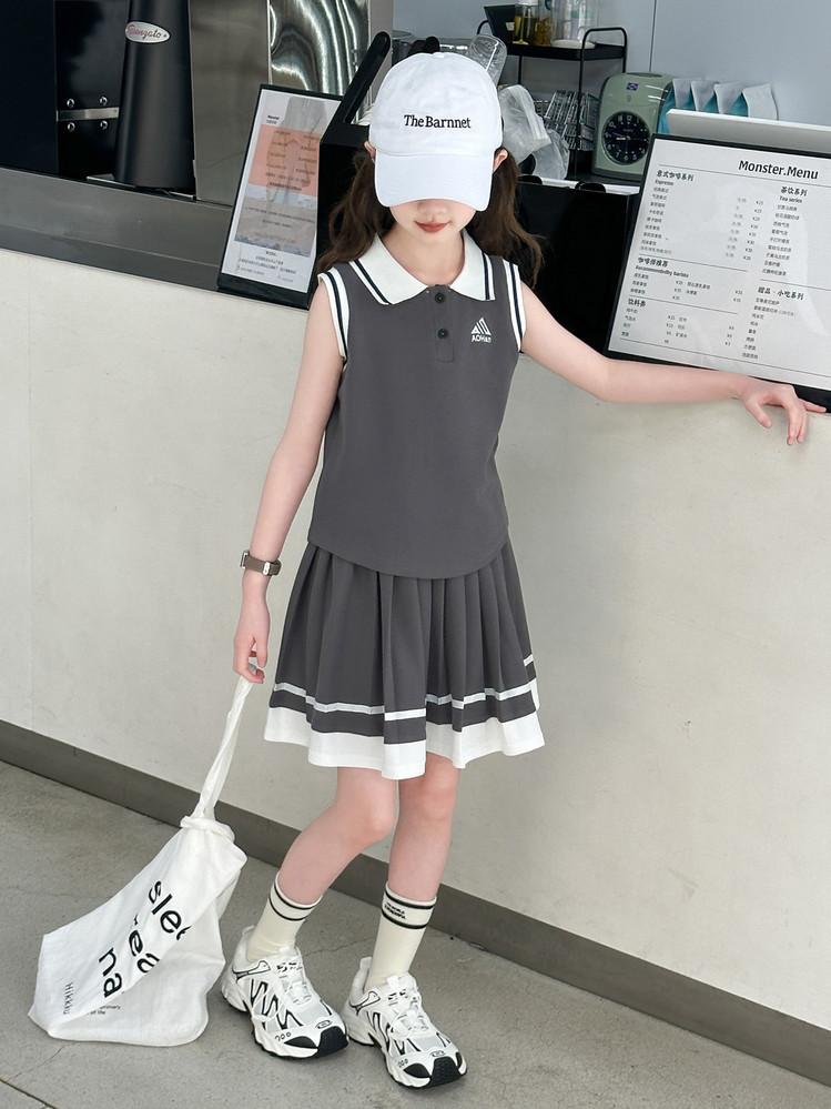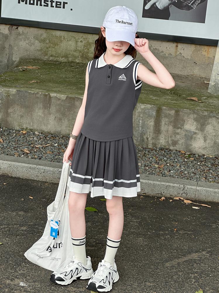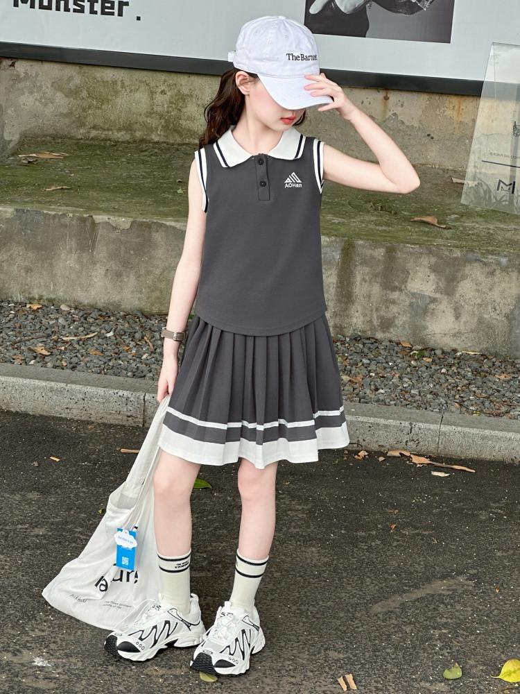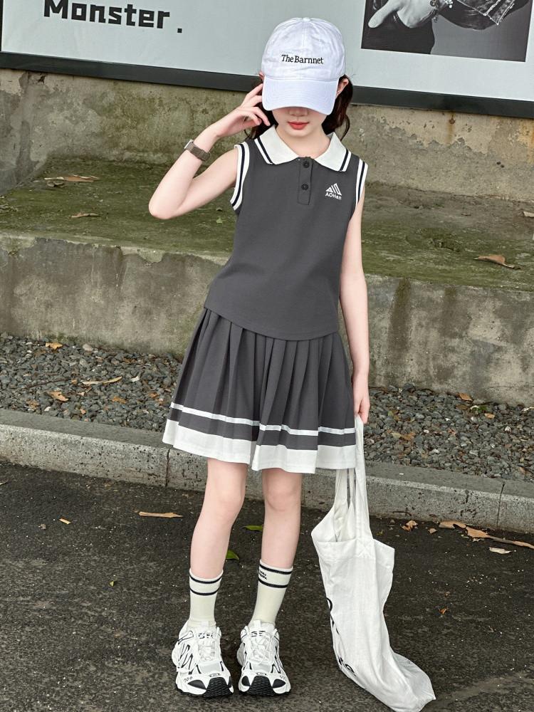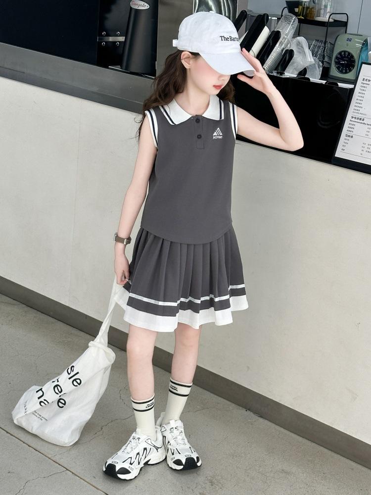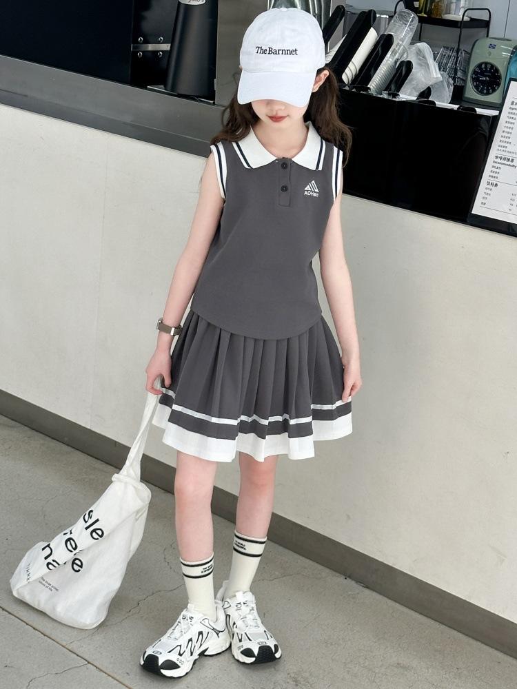 Compra Traje de Verano para Niñas 2025 Nuevo Estilo Moda Infantil Estilo Preppy de Moda Chaleco sin Mangas Falda Plisada Conjunto de Dos Piezas a la Moda al por mayor en Joom.pro