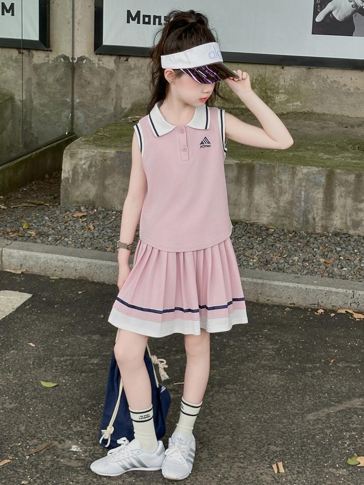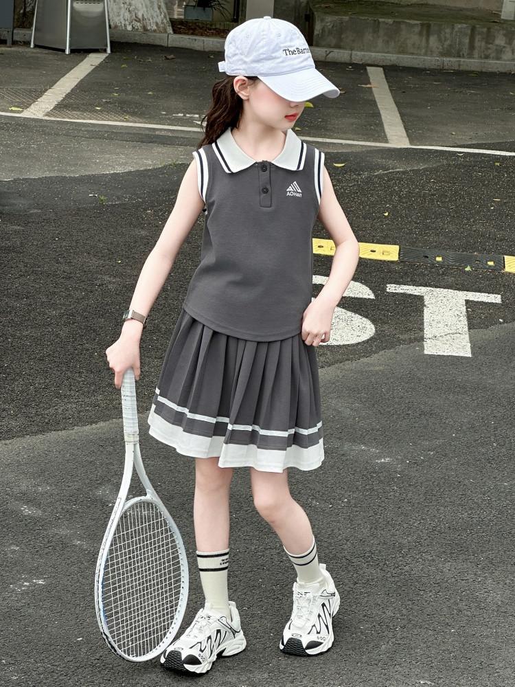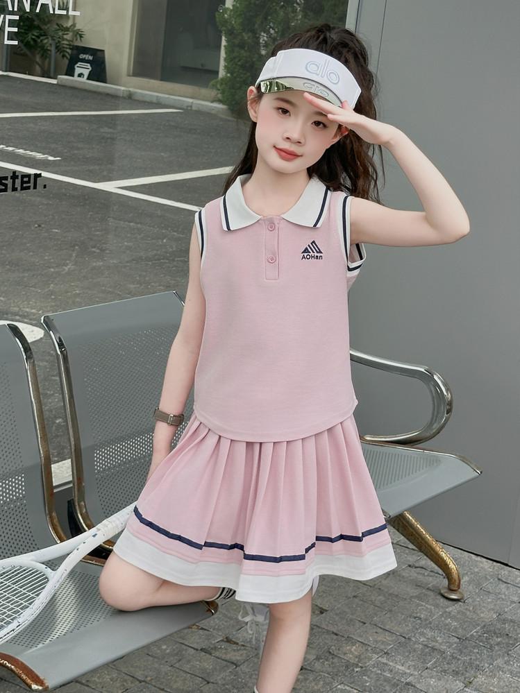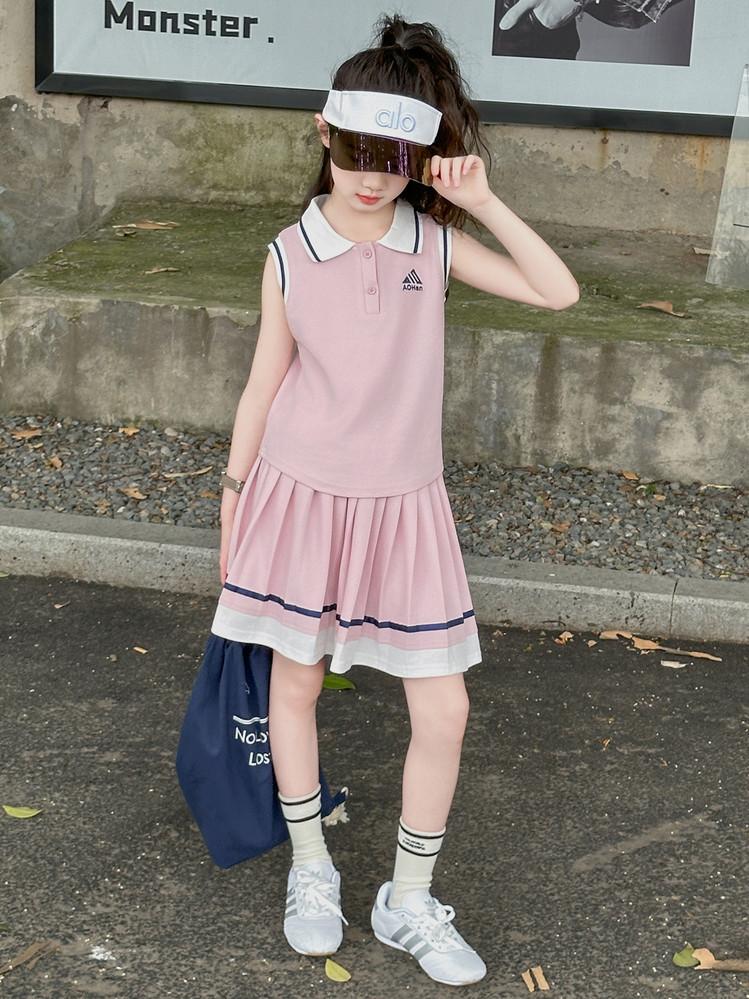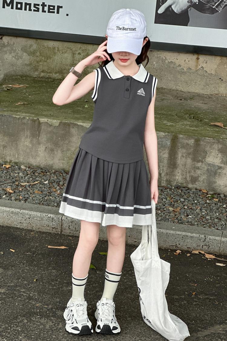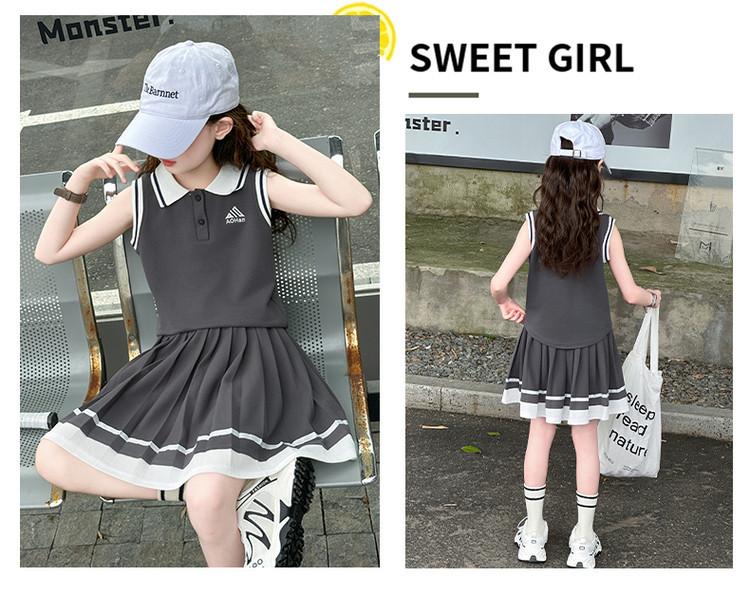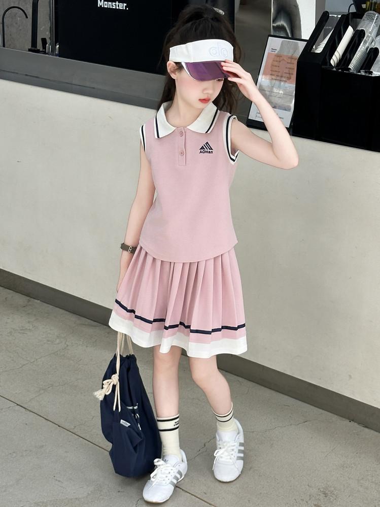 Compra Traje de Verano para Niñas 2025 Nuevo Estilo Moda Infantil Estilo Preppy de Moda Chaleco sin Mangas Falda Plisada Conjunto de Dos Piezas a la Moda al por mayor en Joom.pro