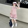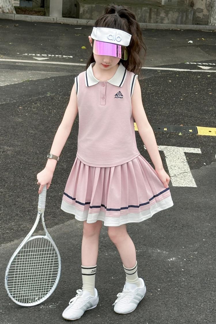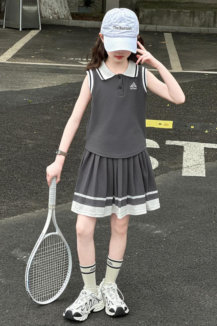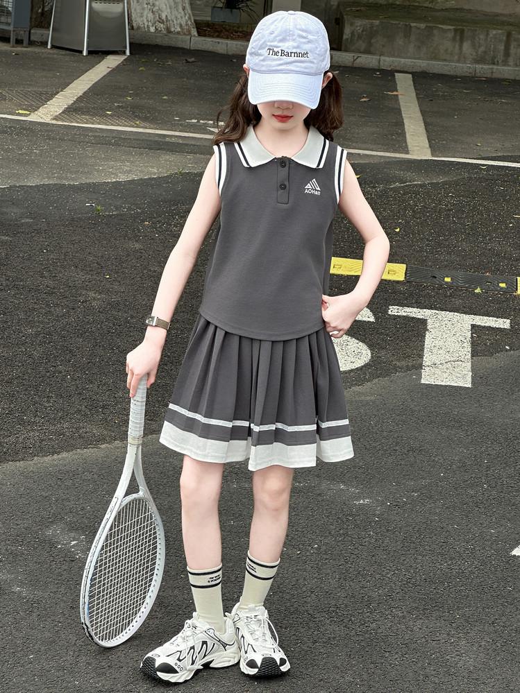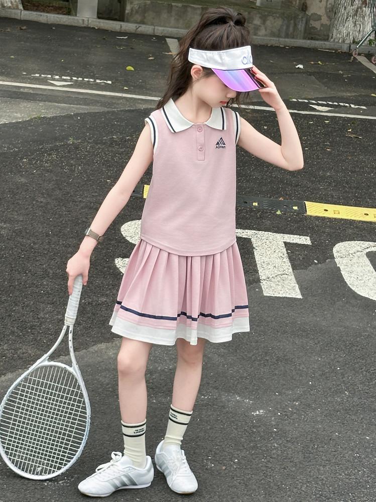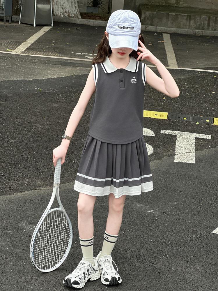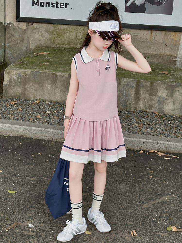 Compra Traje de Verano para Niñas 2025 Nuevo Estilo Moda Infantil Estilo Preppy de Moda Chaleco sin Mangas Falda Plisada Conjunto de Dos Piezas a la Moda al por mayor en Joom.pro