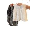 Traje de Moda para Niñas Estilo Occidental Estilo Coreano 2025 Nuevo Primavera y Verano Chaleco de Moda para Bebé Niña Pantalones Conjunto de Dos Piezas