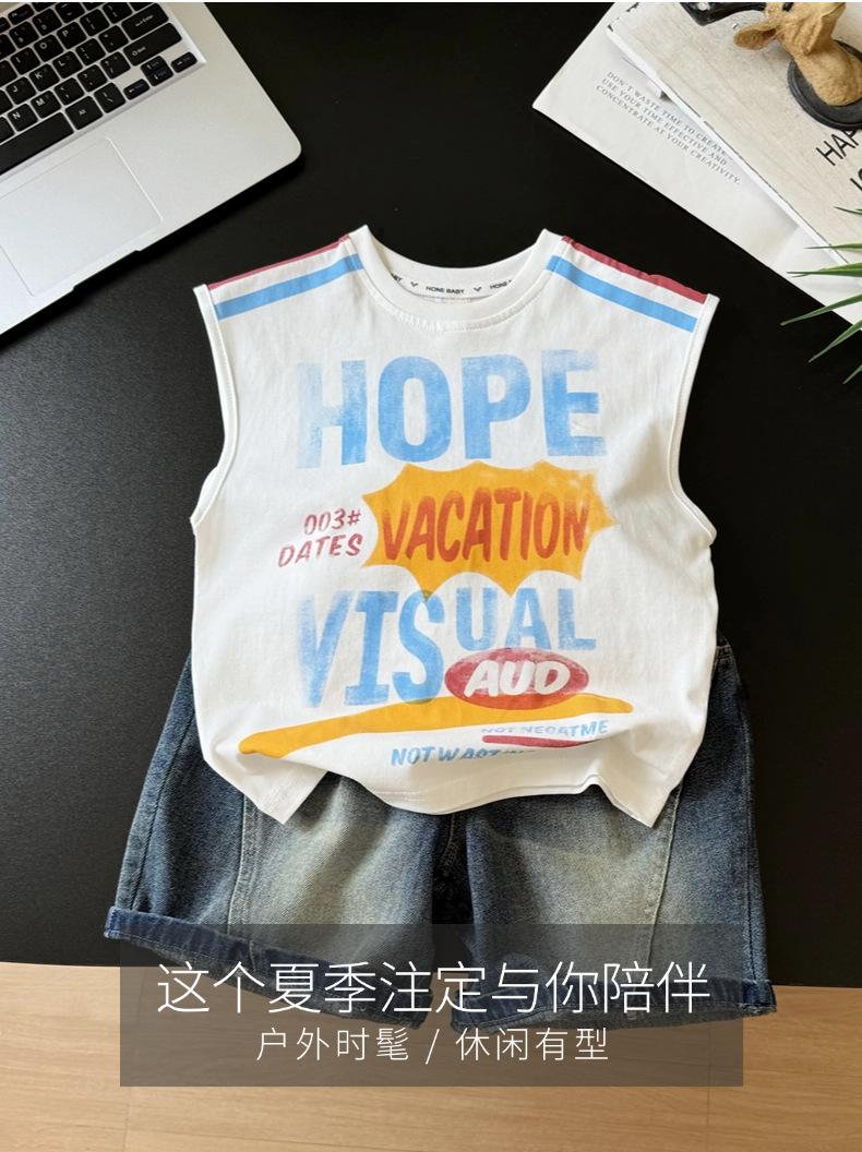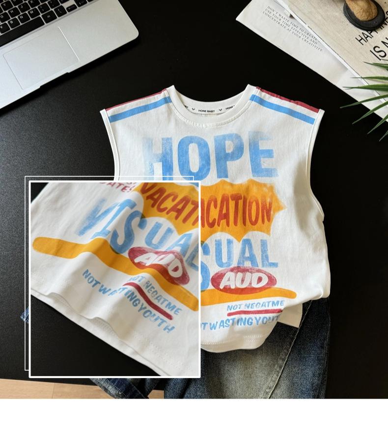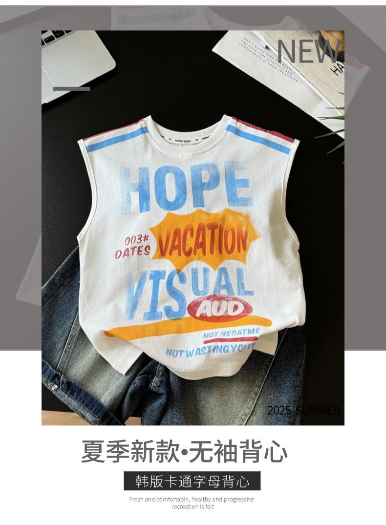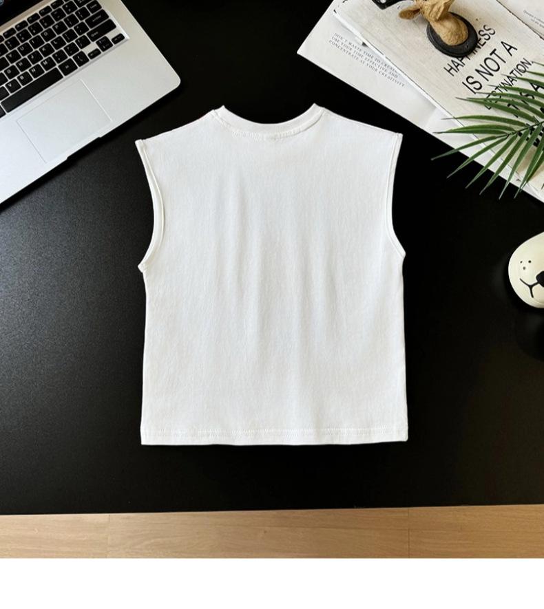 Ropa de Verano sin Mangas para Niños Bebé Algodón Puro Dibujos Animados Tops Chaleco para Niños Camiseta de Verano de Manga Corta para Salir Sección Delgada