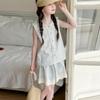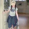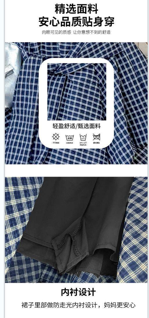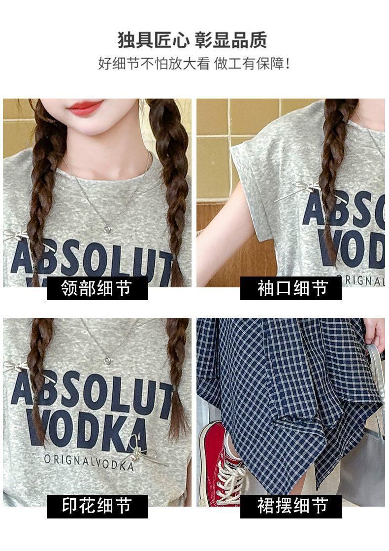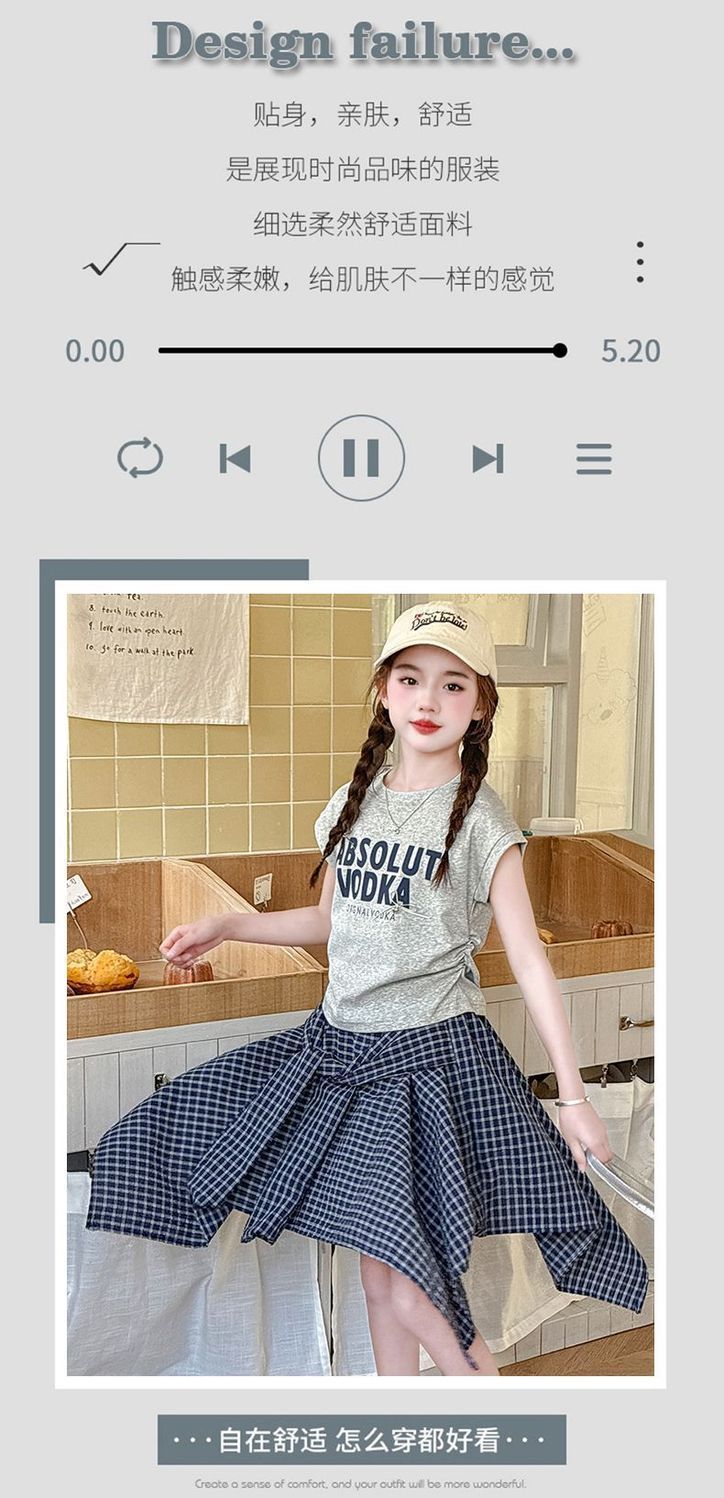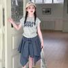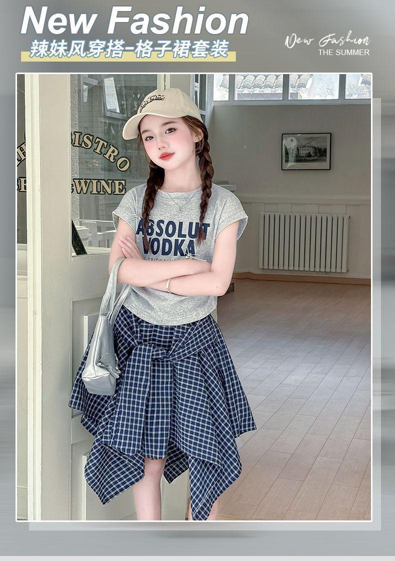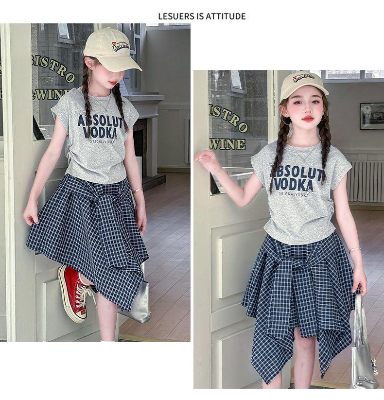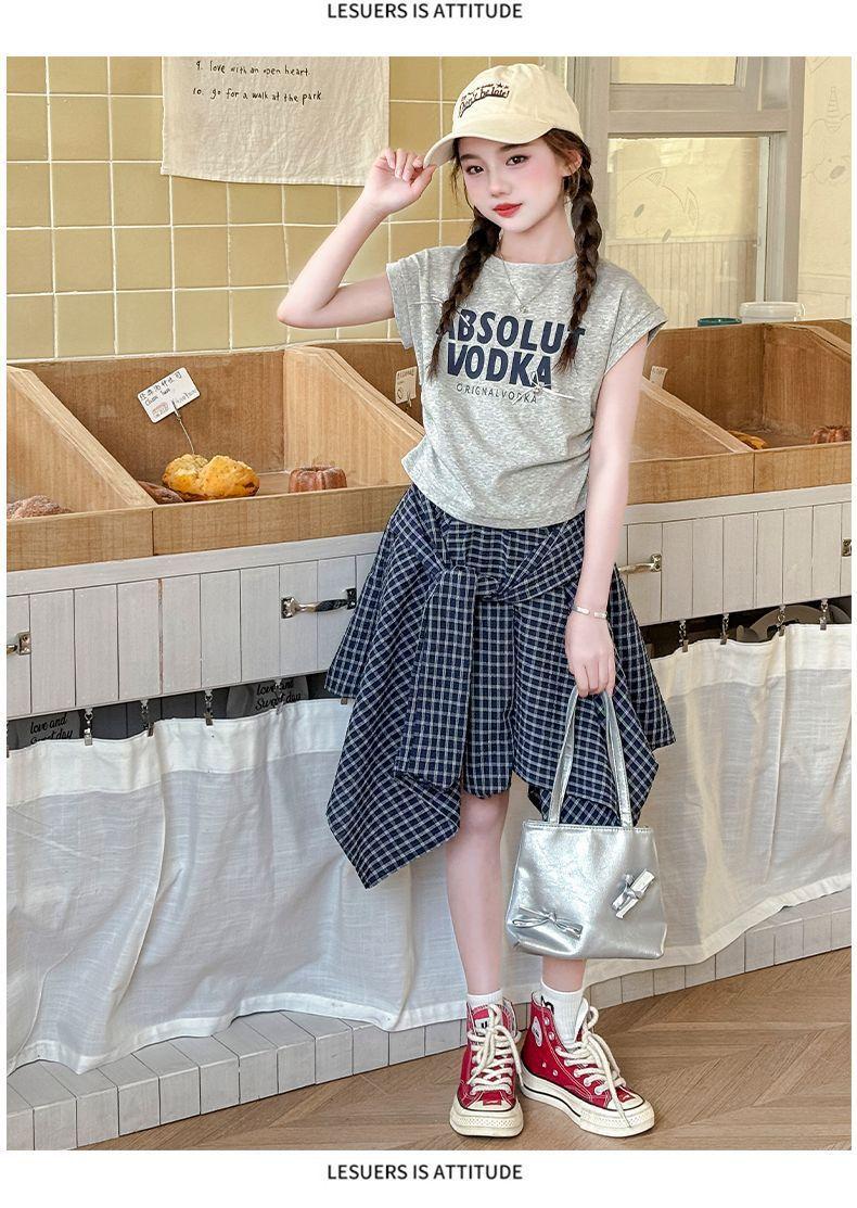 Conjunto de Falda de Verano de Estilo Coreano para Niñas Celebridades de Internet para Niños Mayores Verano Nuevo Estilo Letra Manga Corta Falda a Cuadros Conjunto de Dos Piezas
