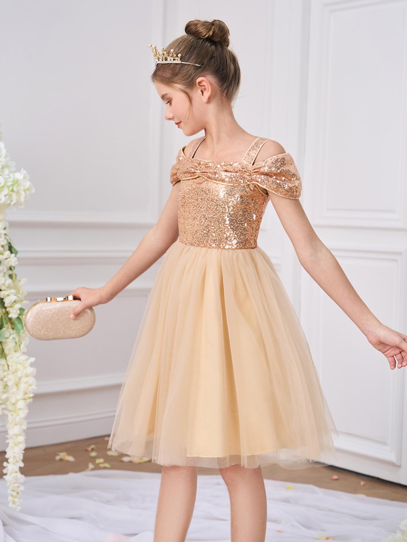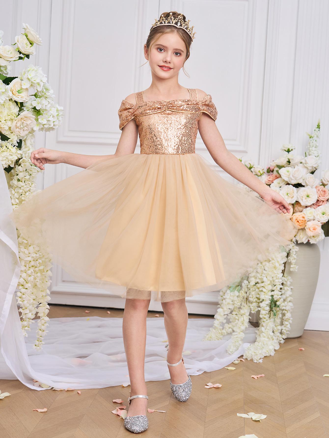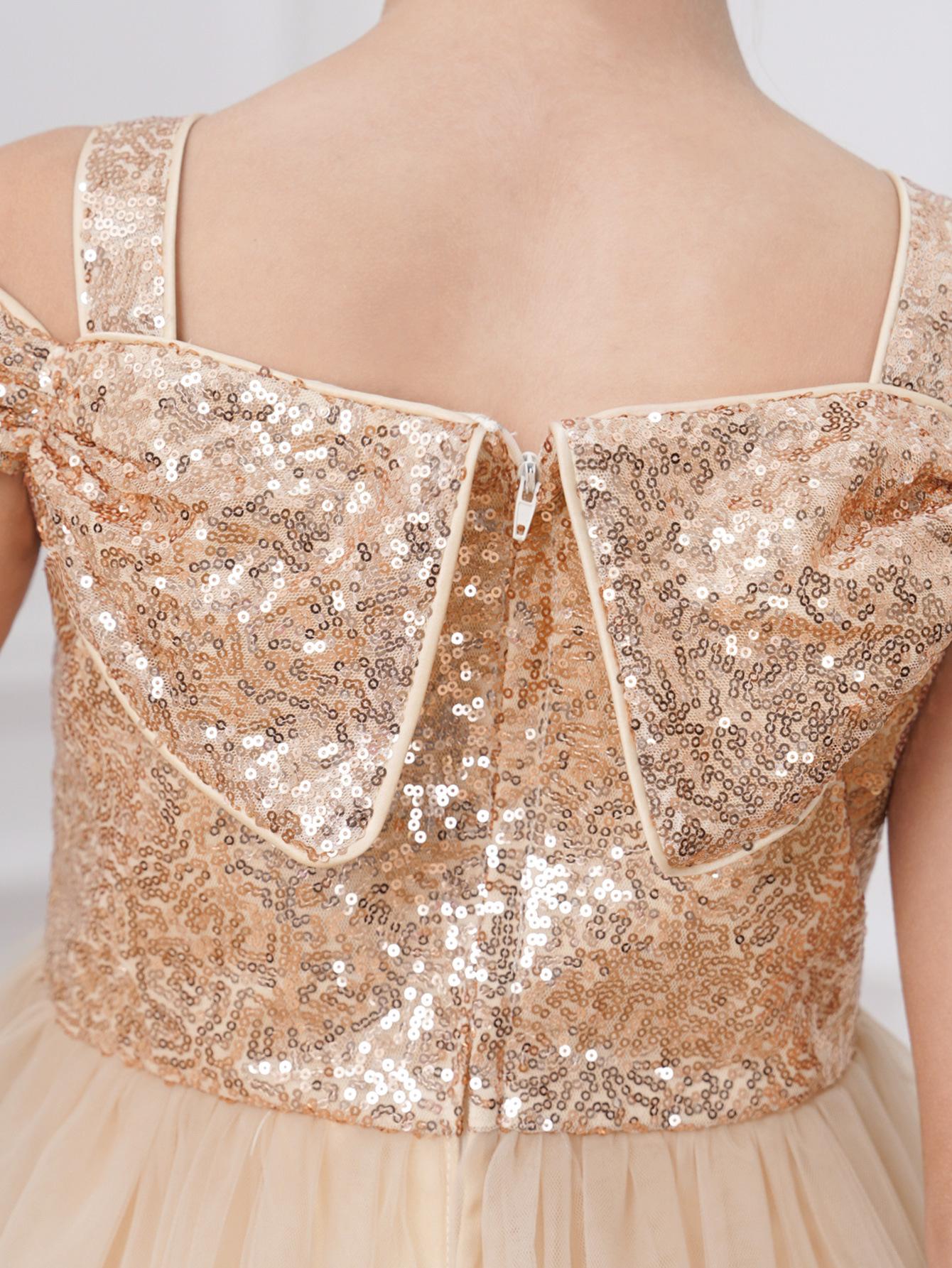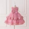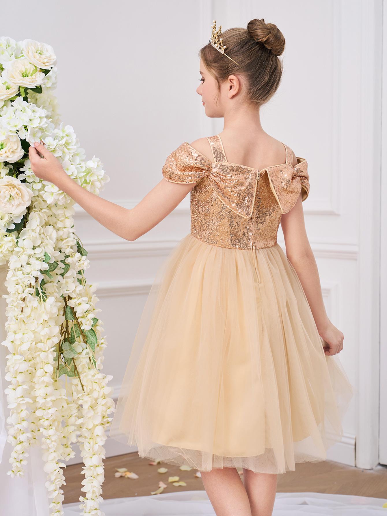 Nuevo Vestido de Princesa para Niñas Europeas y Americanas Vestido de Niña de las Flores Bordado con Lentejuelas y Lazo para Niñas Pequeñas Vestido de Noche Elegante