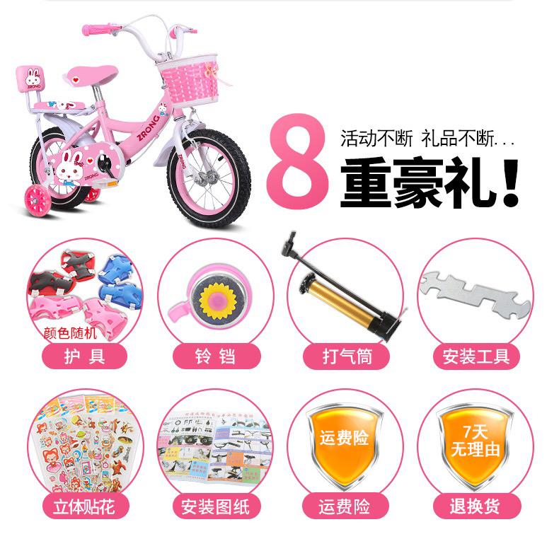 12-inch-[White tire] Pink + flash wheel + woven basket + doll bucket + bear + gift bag
