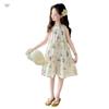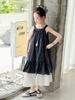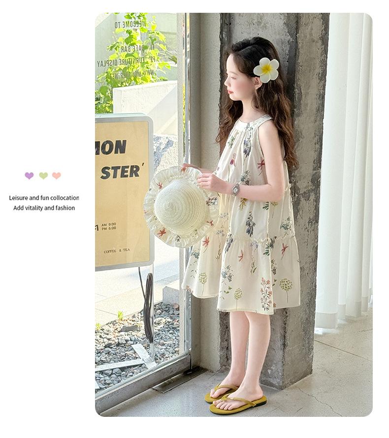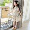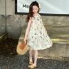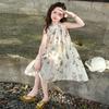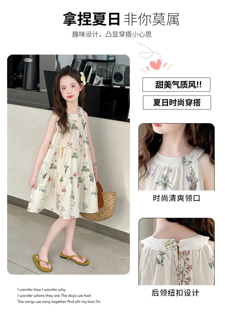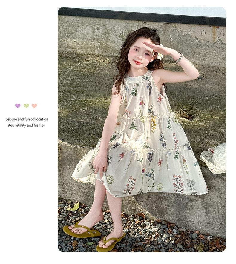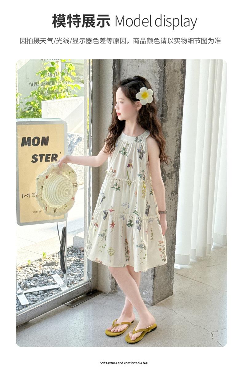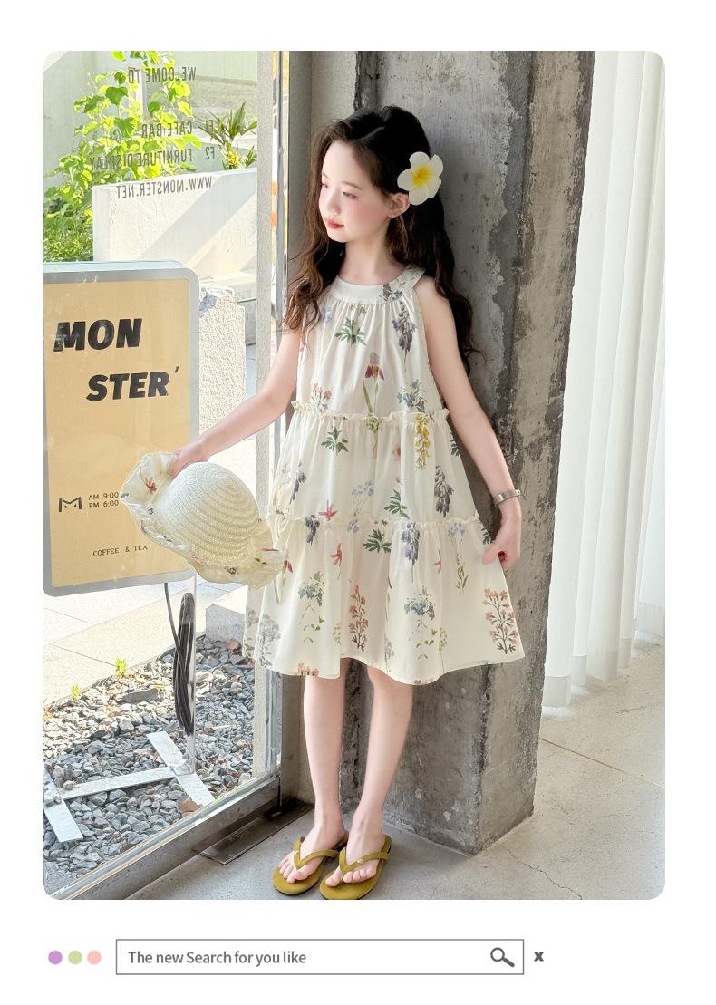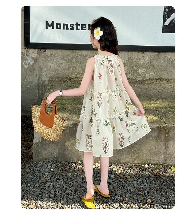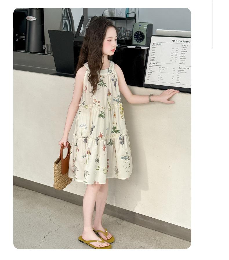 Vestido de Verano para Niñas 2025 Nuevo Estilo Halterneck Falda Floral Mediana y Grande Elegante Falda de Princesa Falda Midi Falda para Niñas