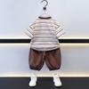 Traje de Niño Verano Camiseta de Rayas de Manga Corta para Niños Conjunto de Dos Piezas 2025 Nuevo Verano Bebé Niño Manga Corta Ropa para Niños
