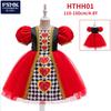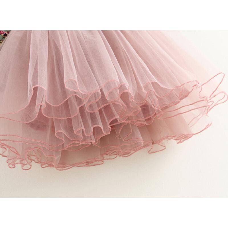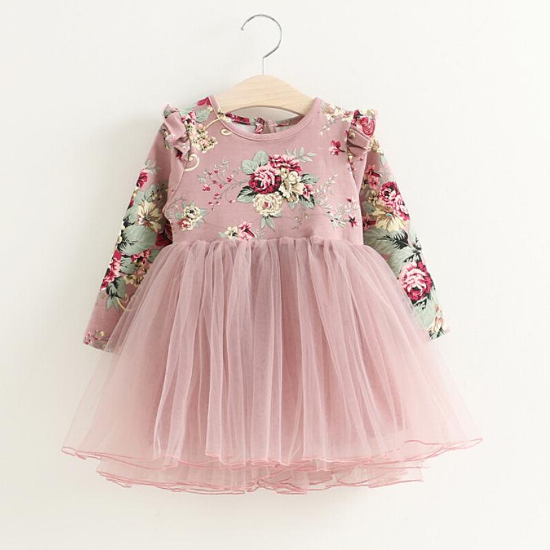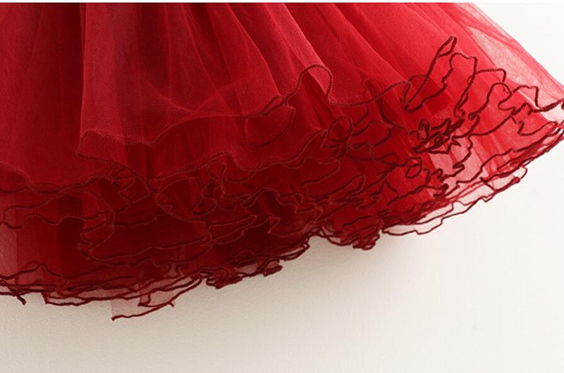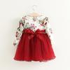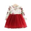 Vestido de niña Vestido de princesa con costuras rojas Vestido con velo de manga larga Vestido de niña pequeña Vestido floral de cumpleaños para bebé