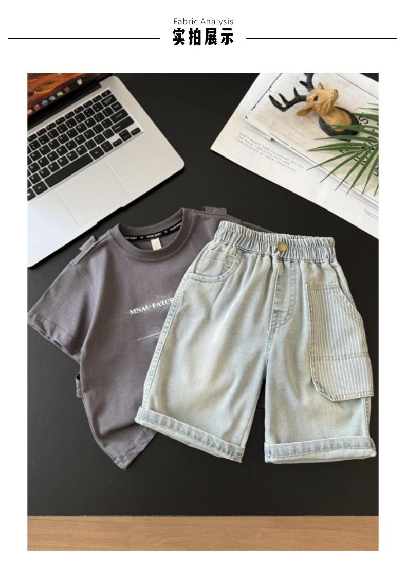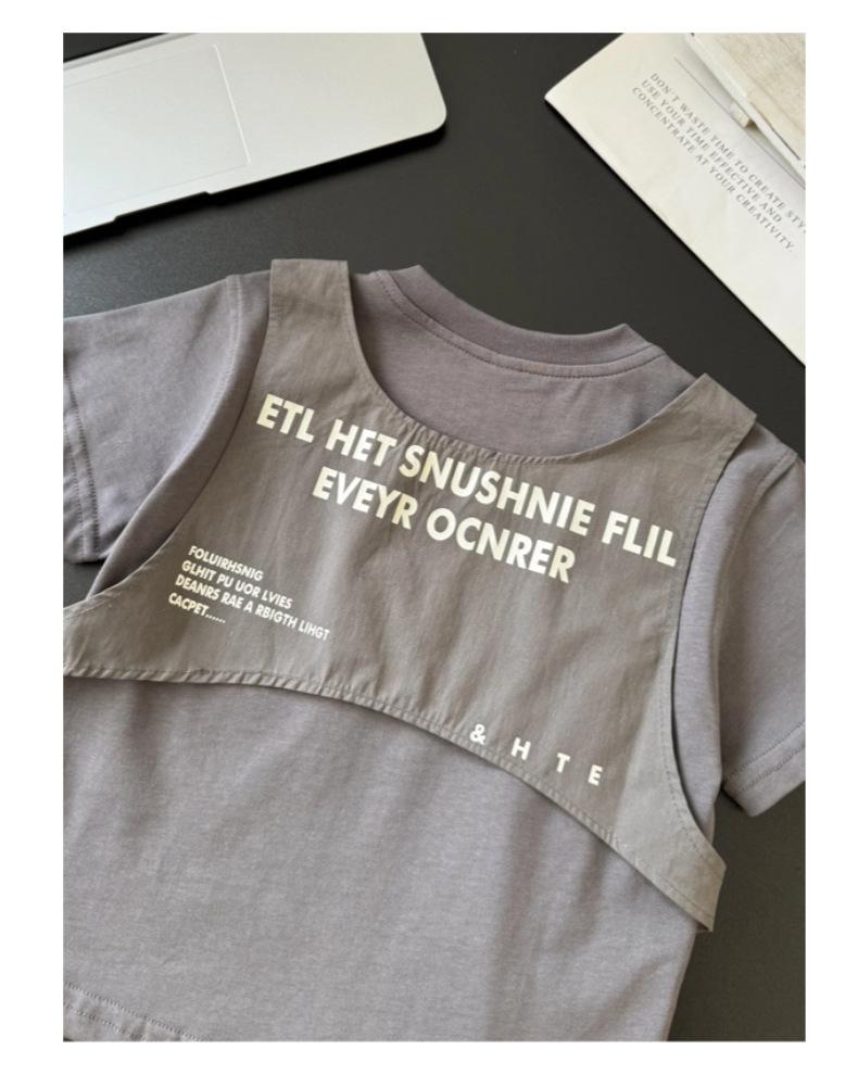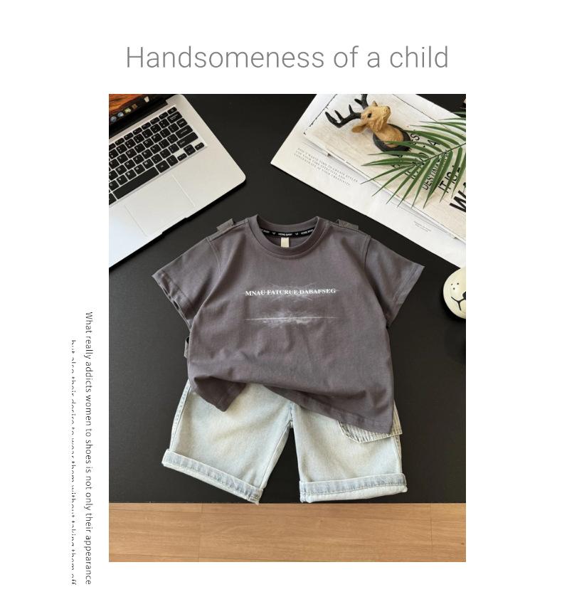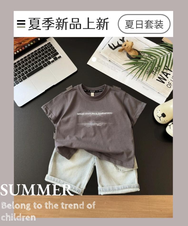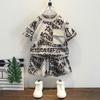 Traje de manga corta para niños 2025 Verano Nuevo estilo coreano Camiseta de manga corta Shorts casuales Conjunto de dos piezas moderno para niños pequeños