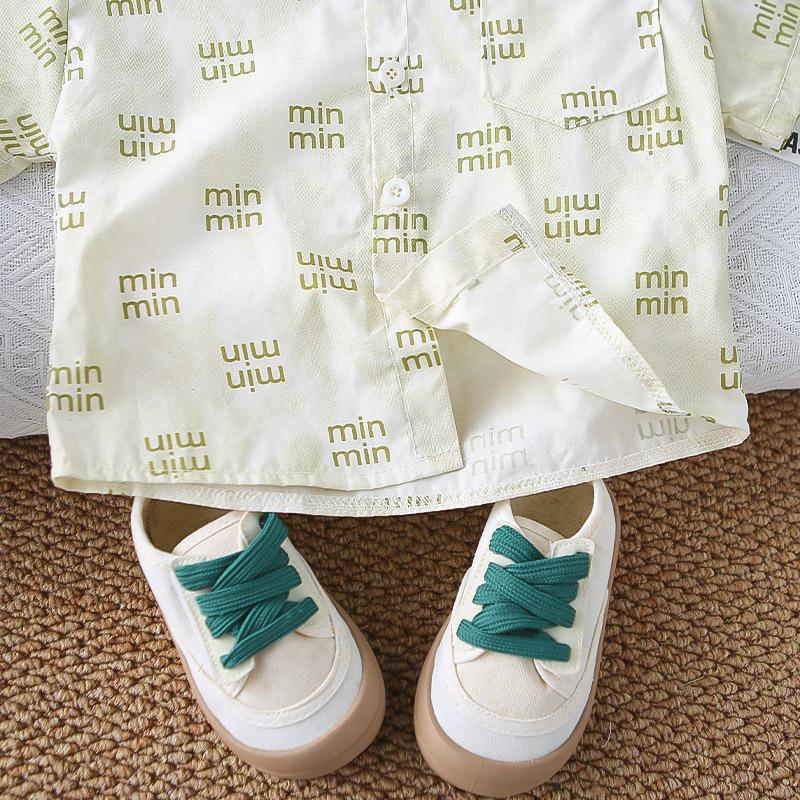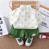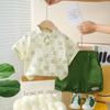 Traje de Verano para Niño 2025 Nuevo Camisa Casual de Manga Corta para Niños Conjunto de Dos Piezas Ropa de Verano para Bebé a la Moda Trendy