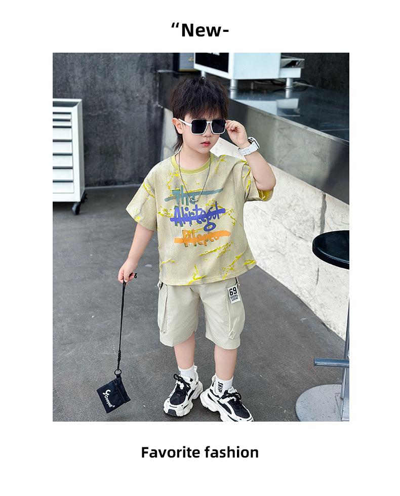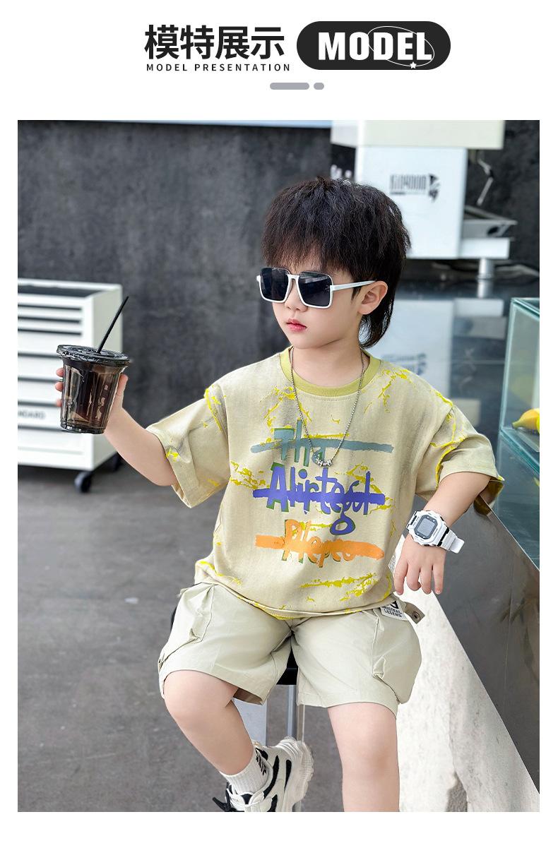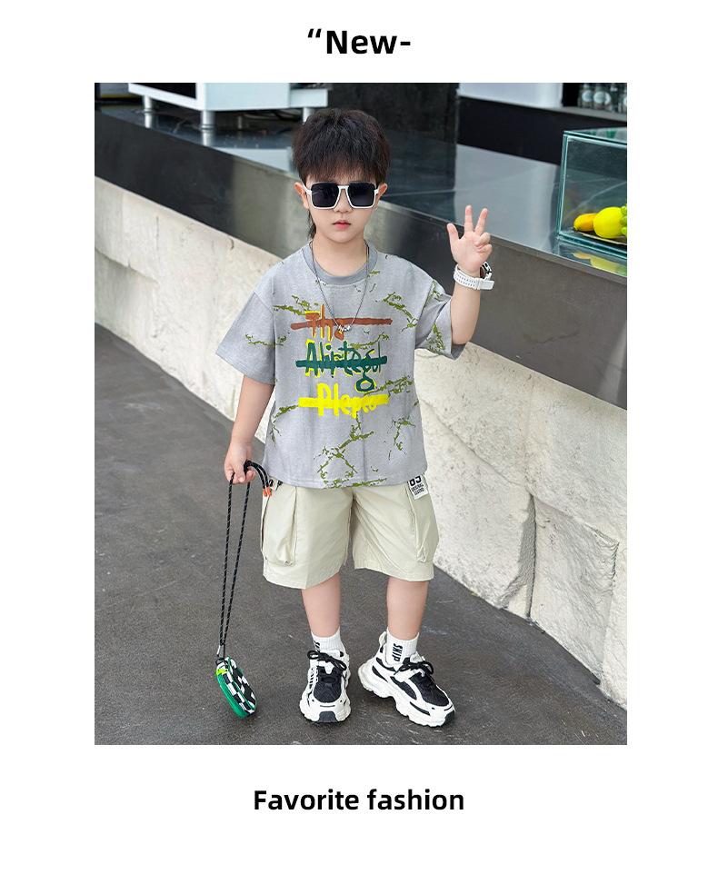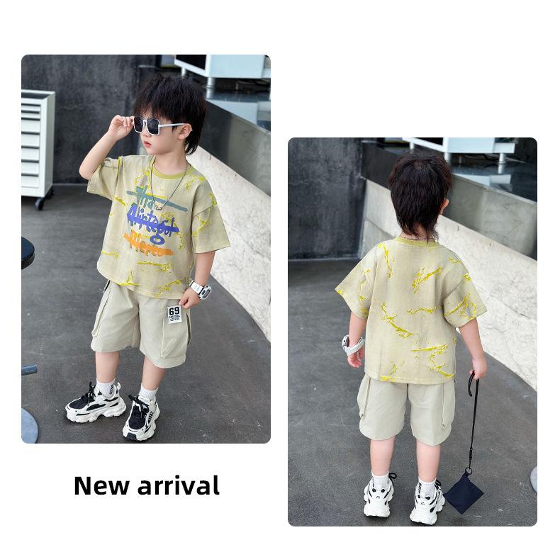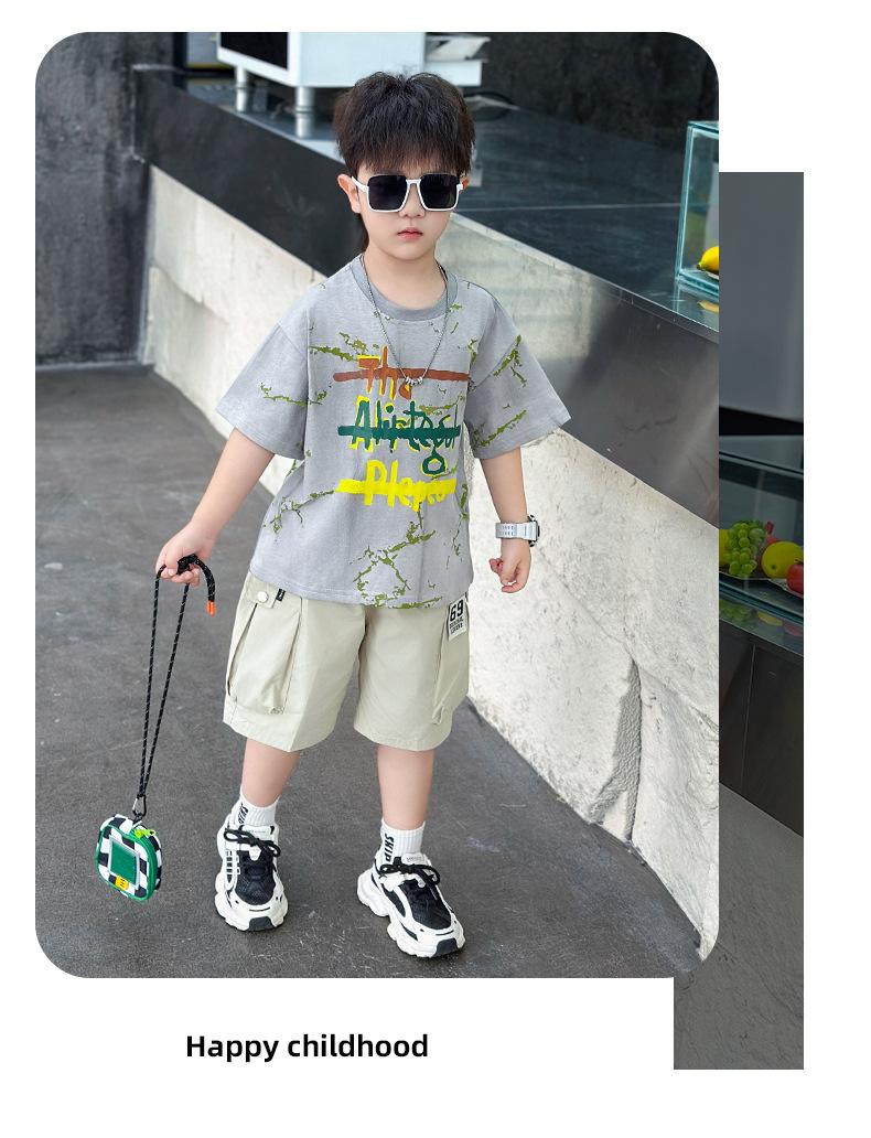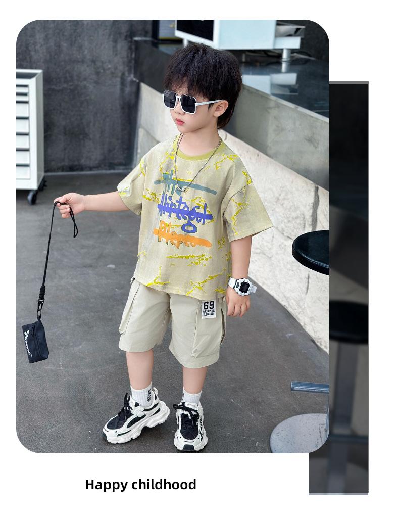 Traje de Verano de Manga Corta para Niño Estilo Occidental Ropa Delgada de Dos Piezas para Niños 2025 Nueva Moda Ropa Infantil Urbana para Bebé