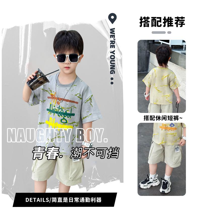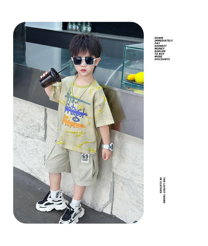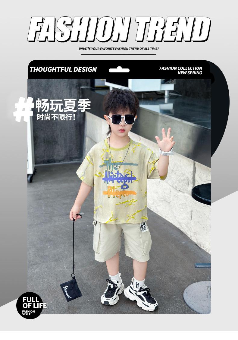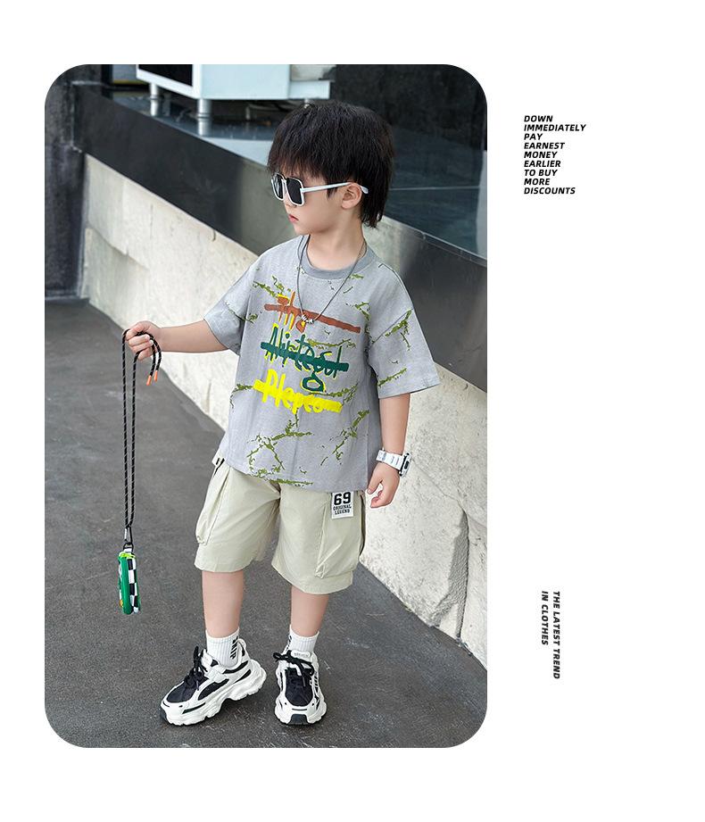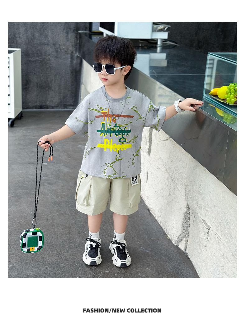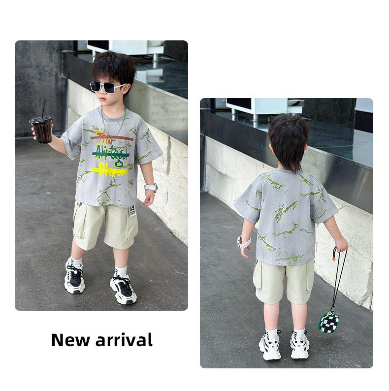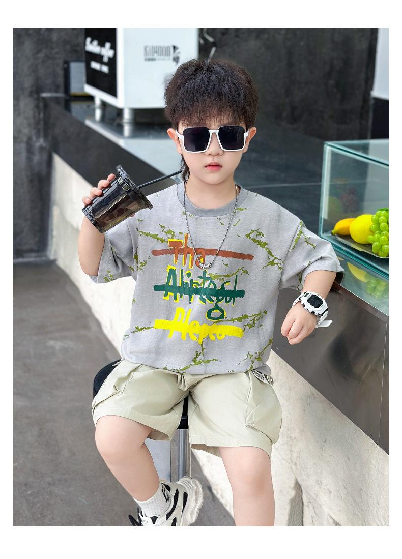 Traje de Verano de Manga Corta para Niño Estilo Occidental Ropa Delgada de Dos Piezas para Niños 2025 Nueva Moda Ropa Infantil Urbana para Bebé