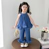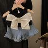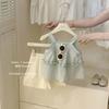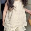 Conjunto de Verano para Niñas Bebé Elegante Infantil Moderno Marca Versión Coreana Dulce Encaje Bordado Jacquard Chaleco Shorts