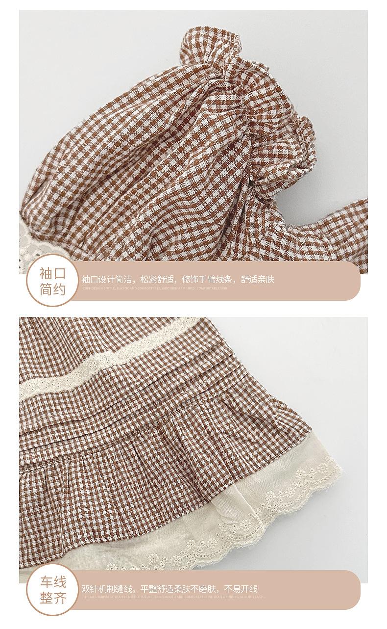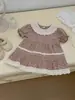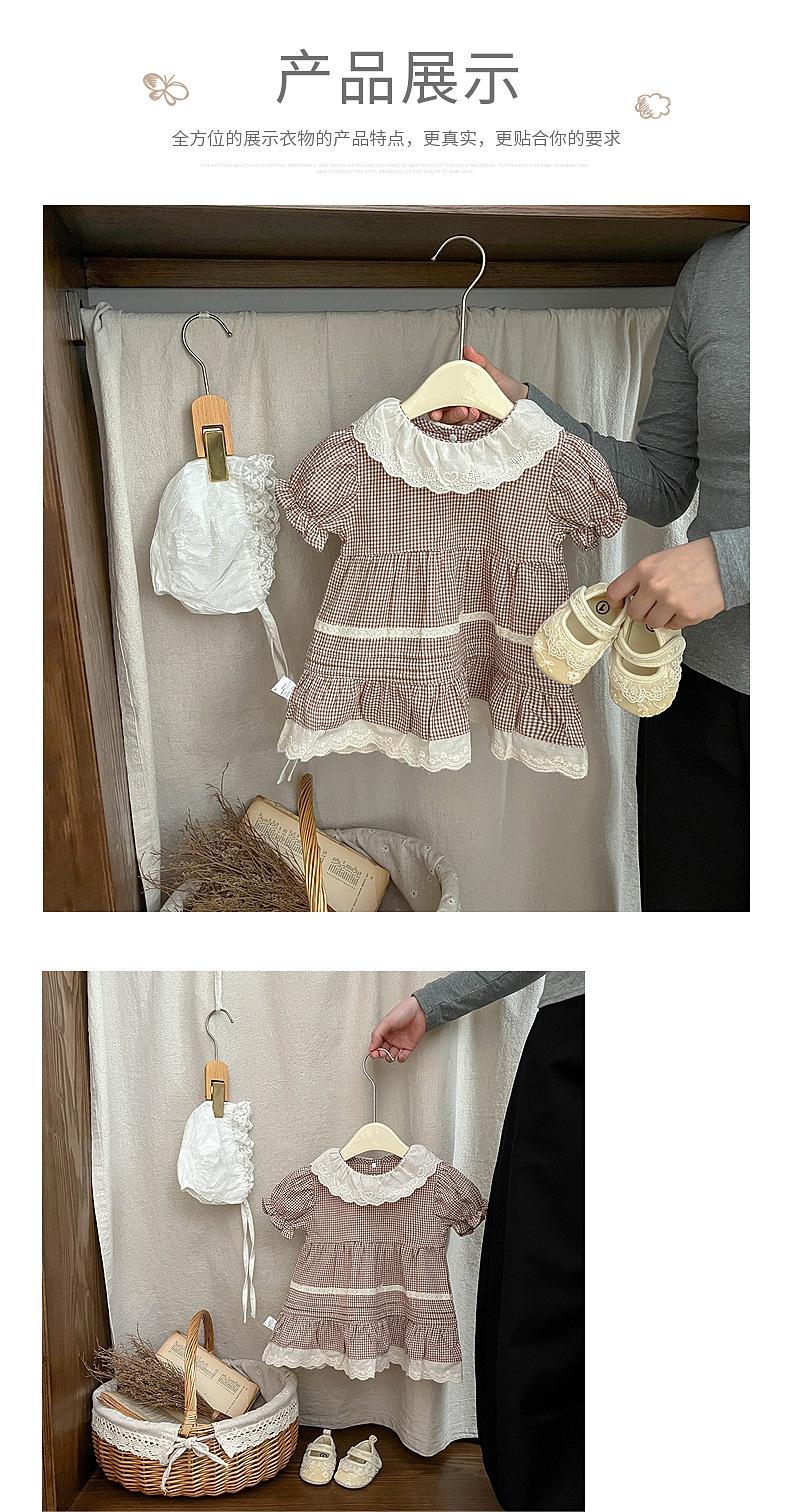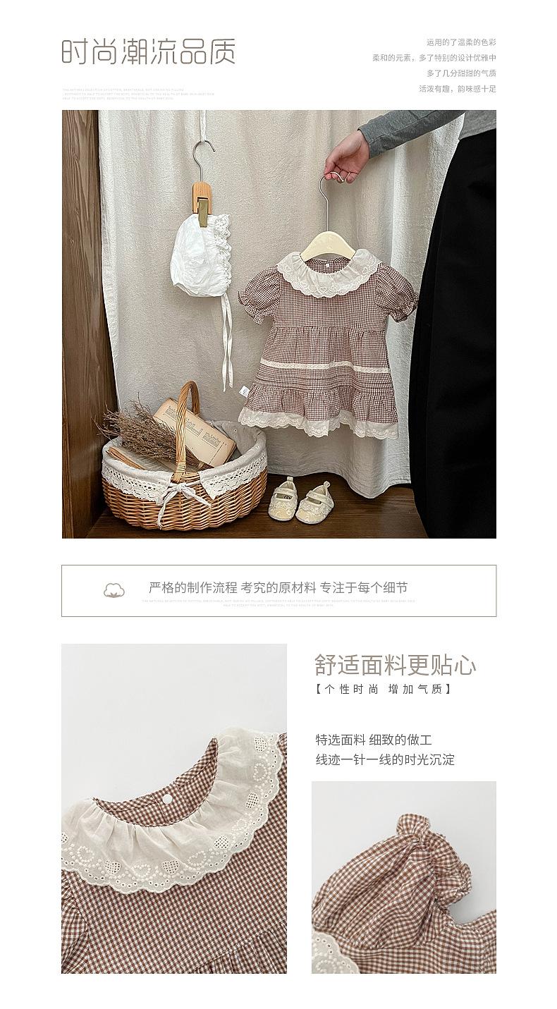 Vestido de verano de algodón fino para bebé 2025 nuevo estilo niña a cuadros manga corta cuello de muñeca vestido de princesa