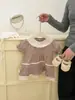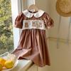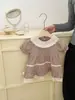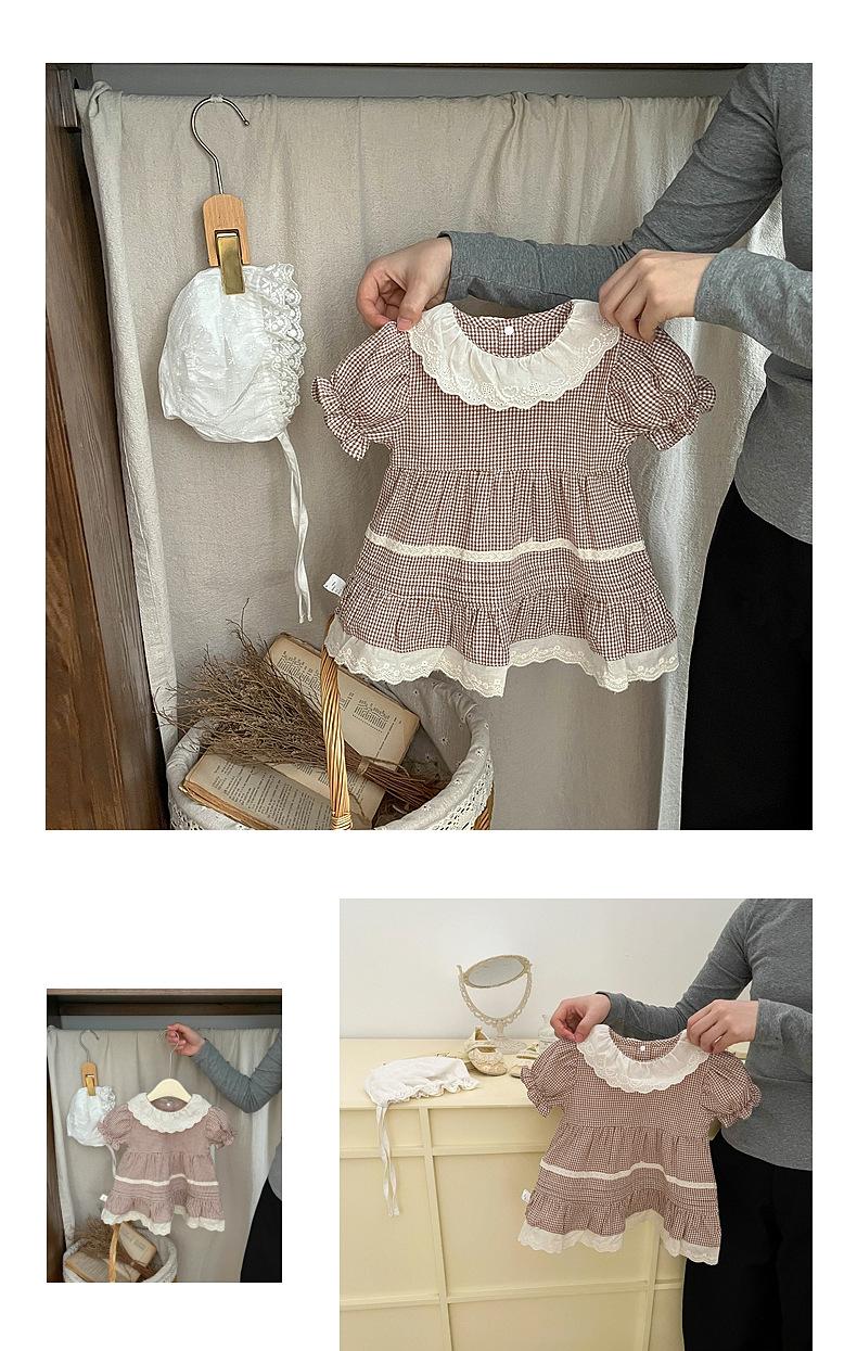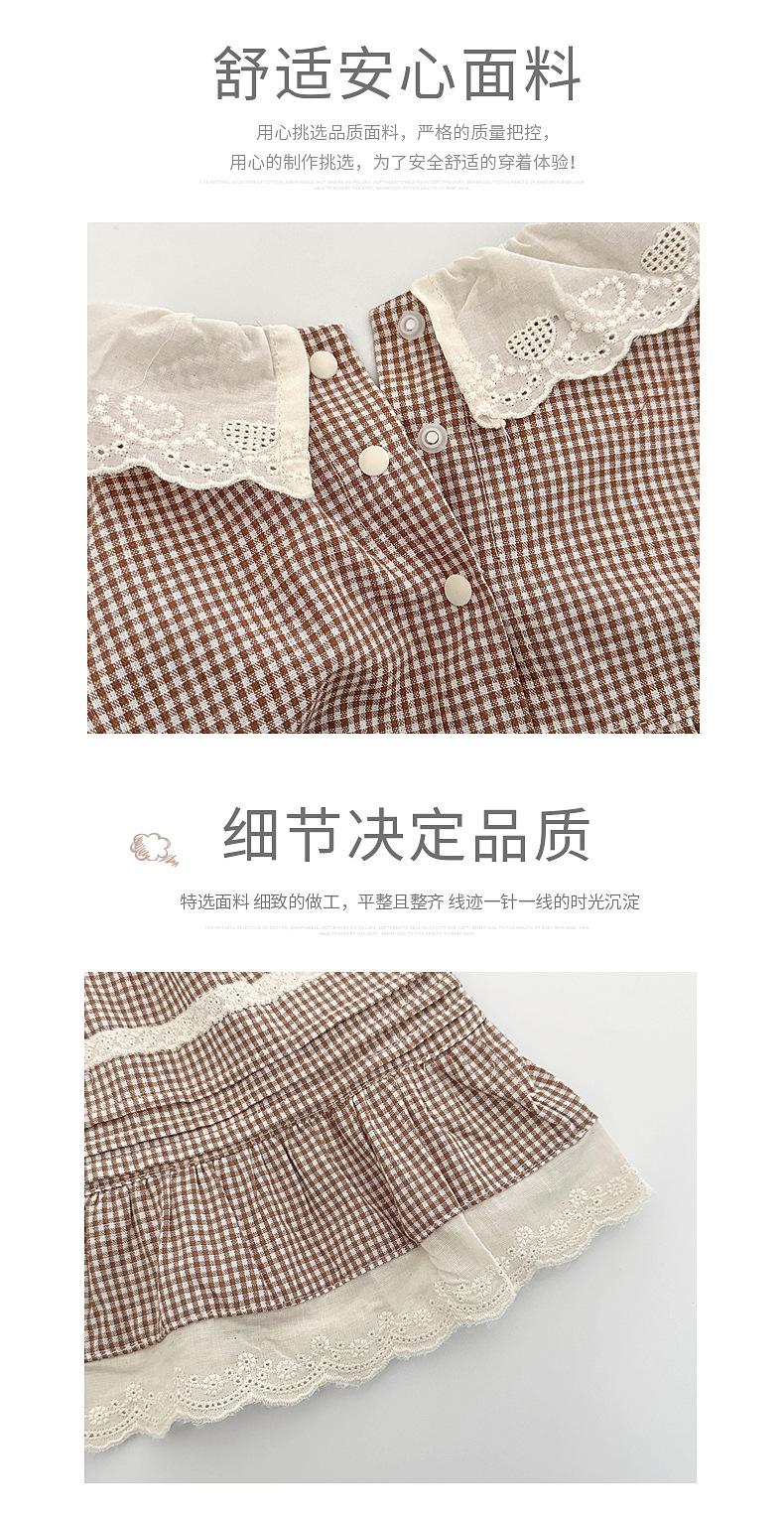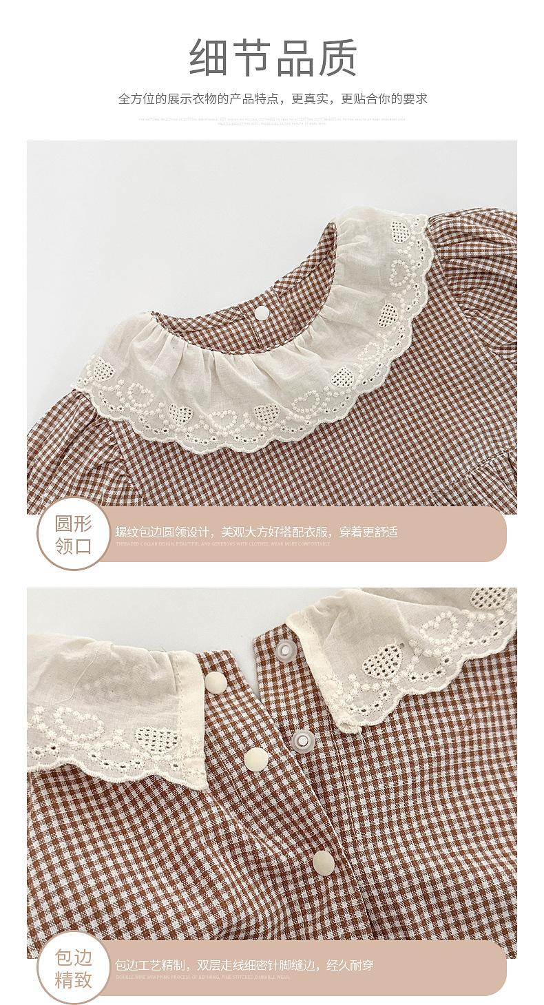 Vestido de verano de algodón fino para bebé 2025 nuevo estilo niña a cuadros manga corta cuello de muñeca vestido de princesa