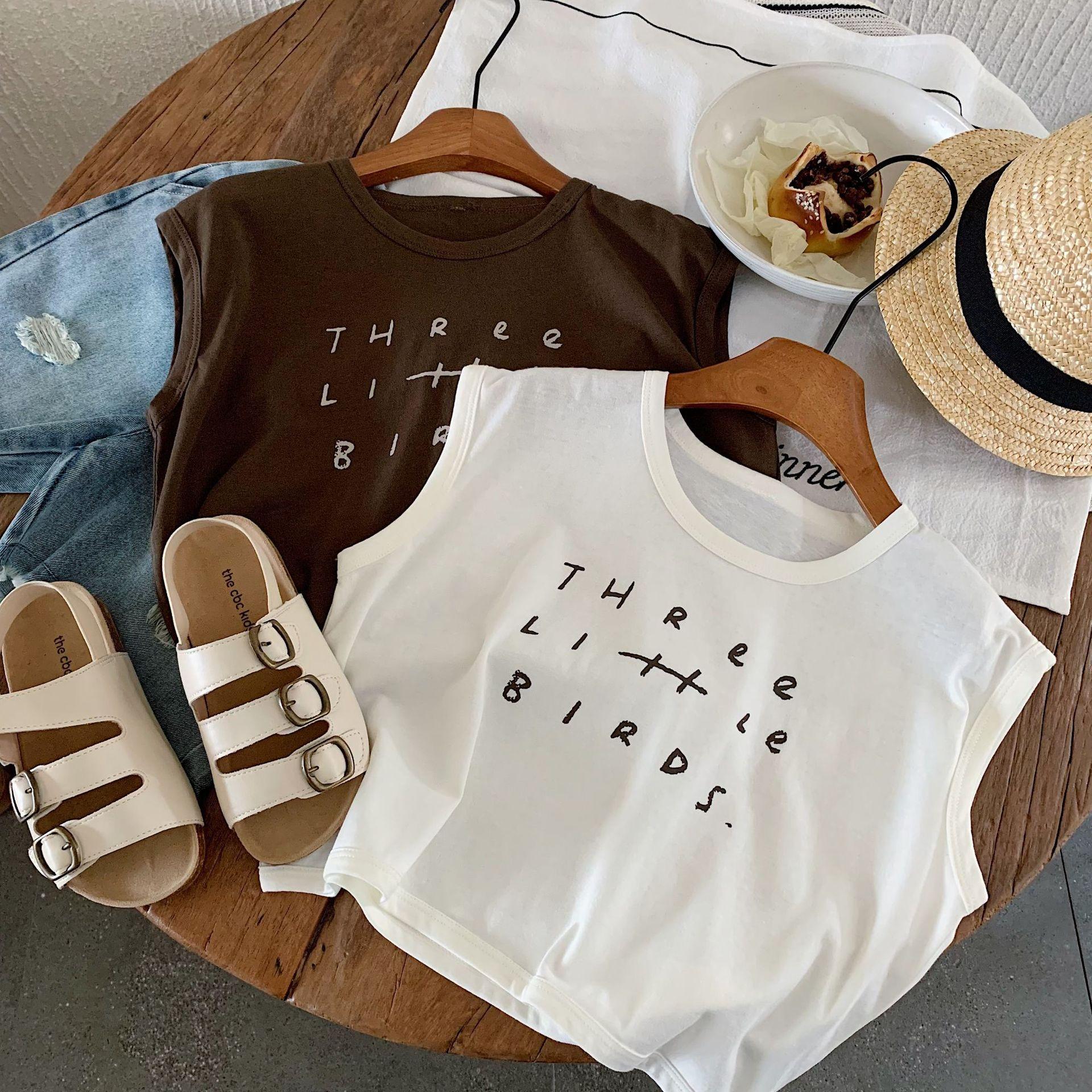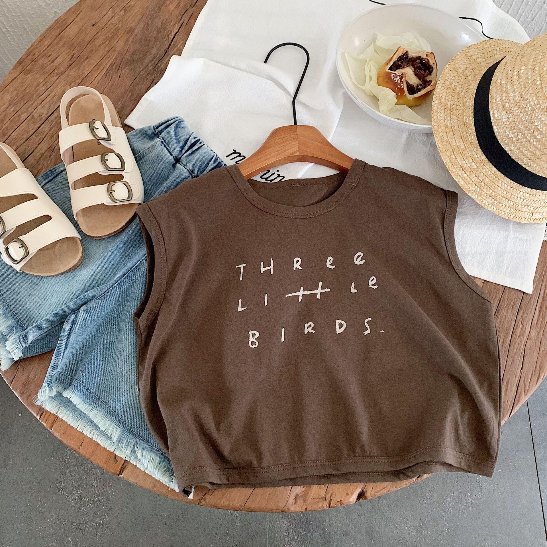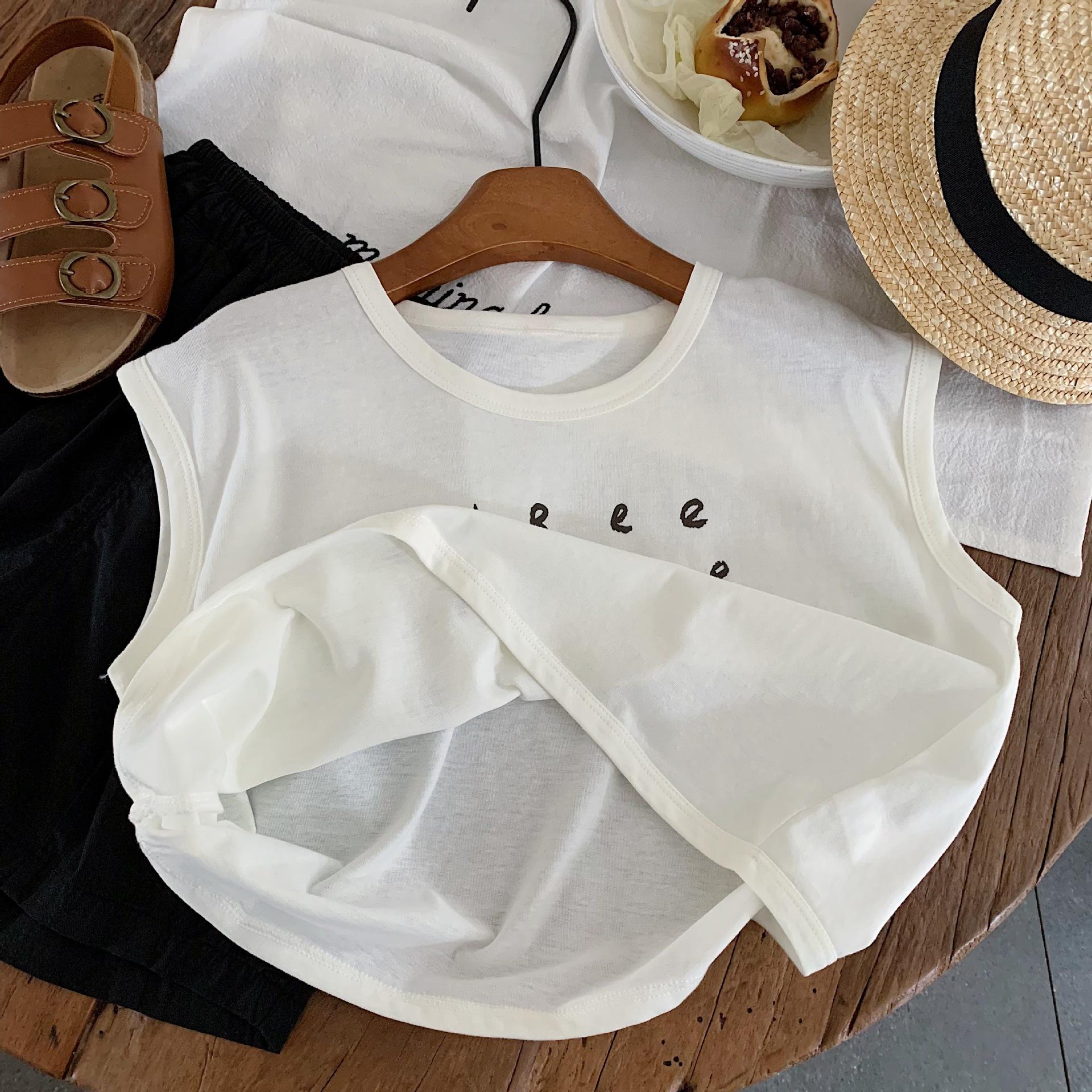 Camiseta Infantil Chaleco para Niño 2025 Verano Nuevo Coreano Casual Espalda Letra Sin Mangas Combinable Camiseta de Verano