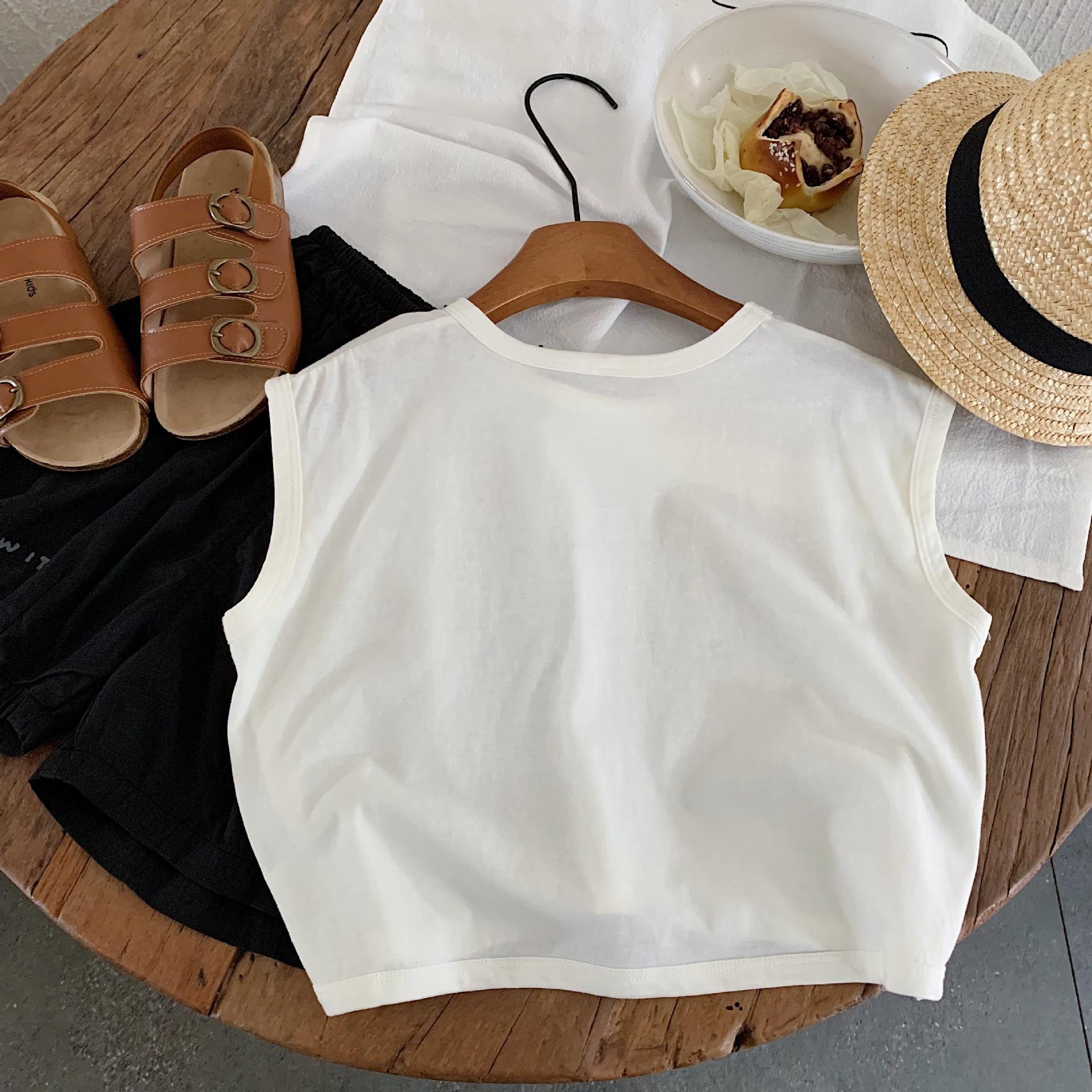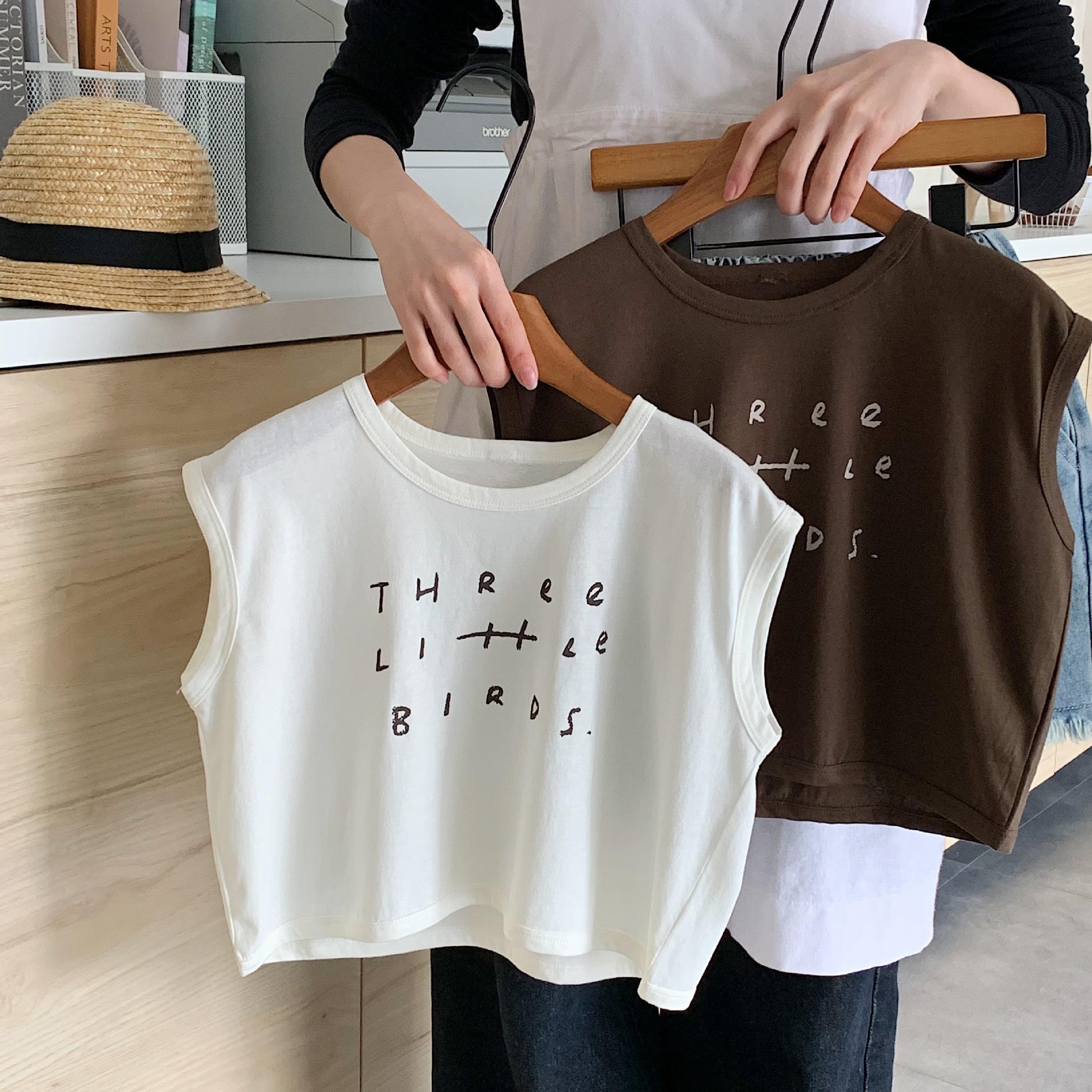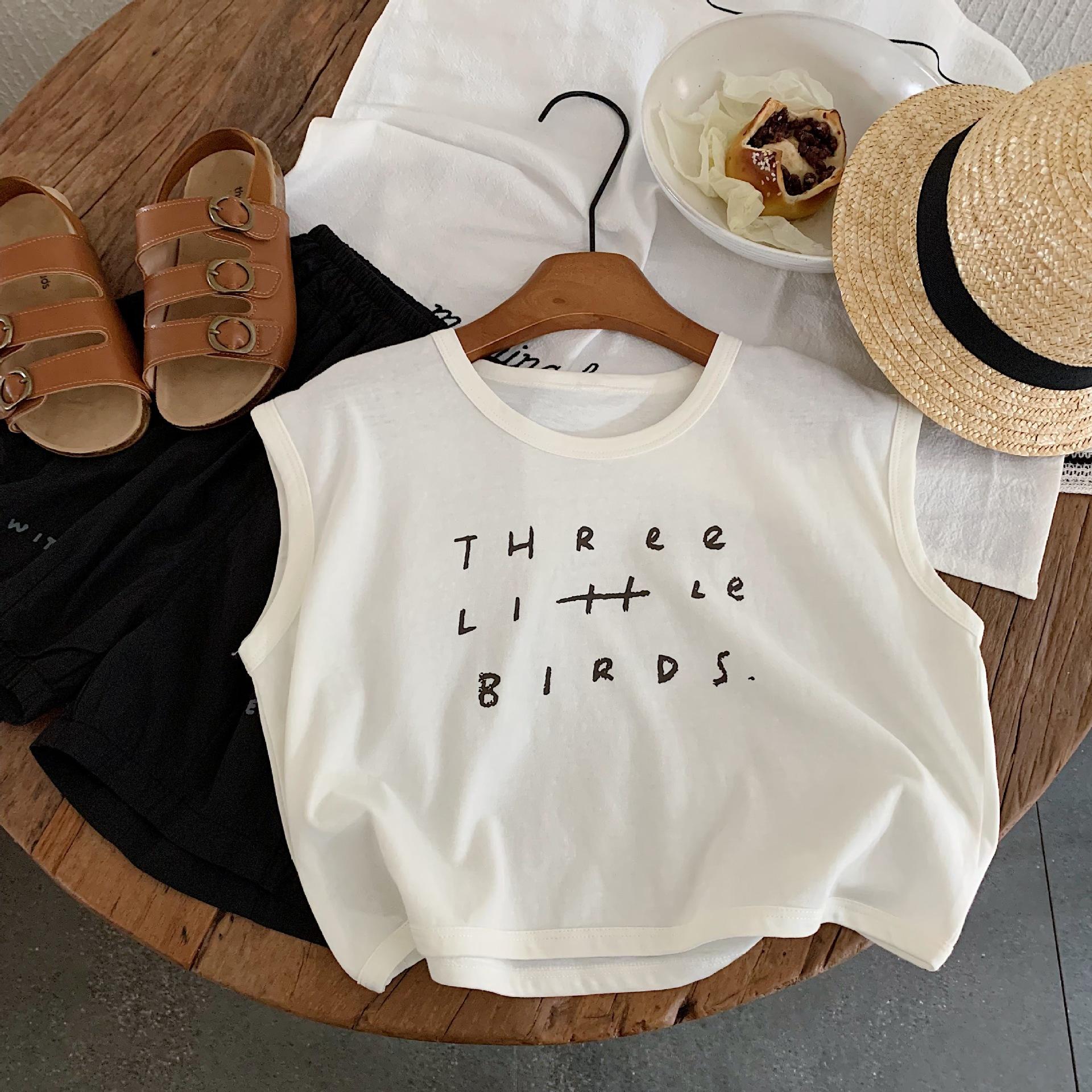 Camiseta Infantil Chaleco para Niño 2025 Verano Nuevo Coreano Casual Espalda Letra Sin Mangas Combinable Camiseta de Verano
