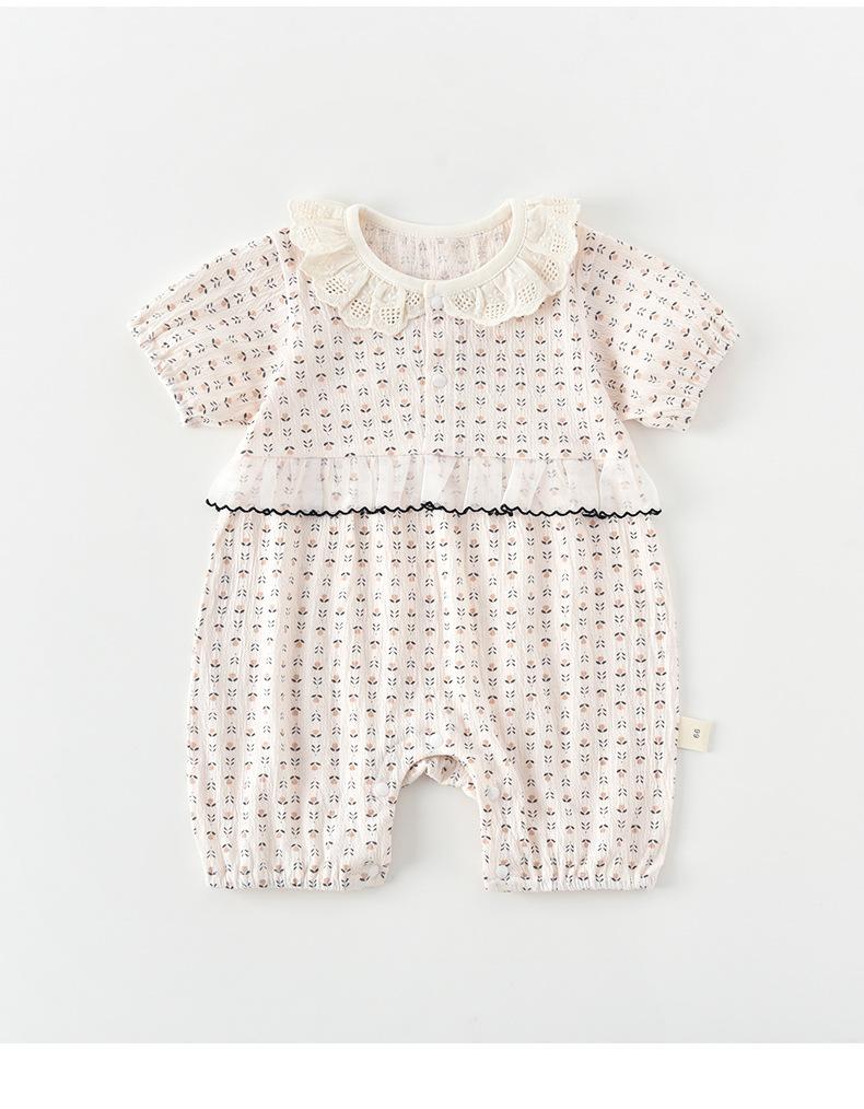 Body para bebé estilo coreano Verano Delgado Manga corta Camiseta con sombrero para niñas Estilo occidental Floral Estilo princesa Traje Traje para gatear