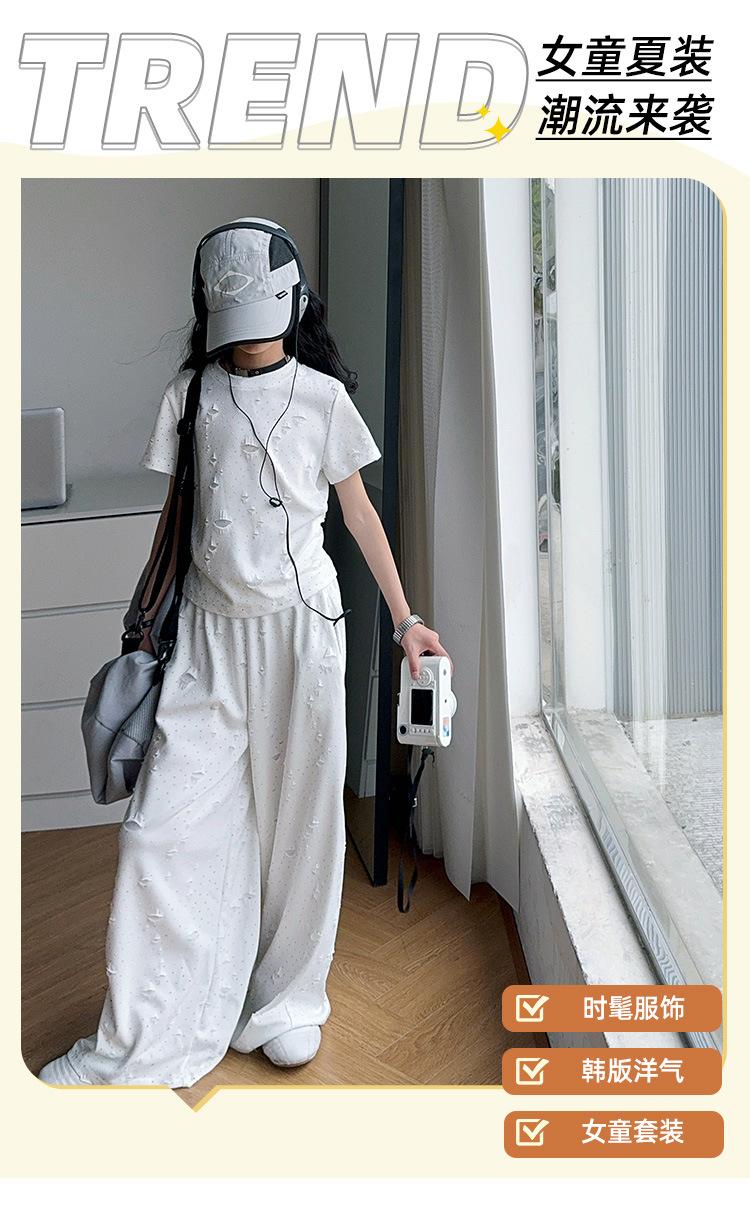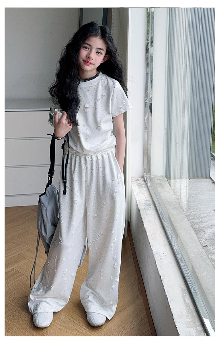Conjunto de Verano Nuevo Elegante y a la Moda para Niñas Mayores, Conjunto Deportivo de Verano para Niñas de Dos Piezas Moderno y Fresco
