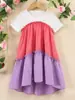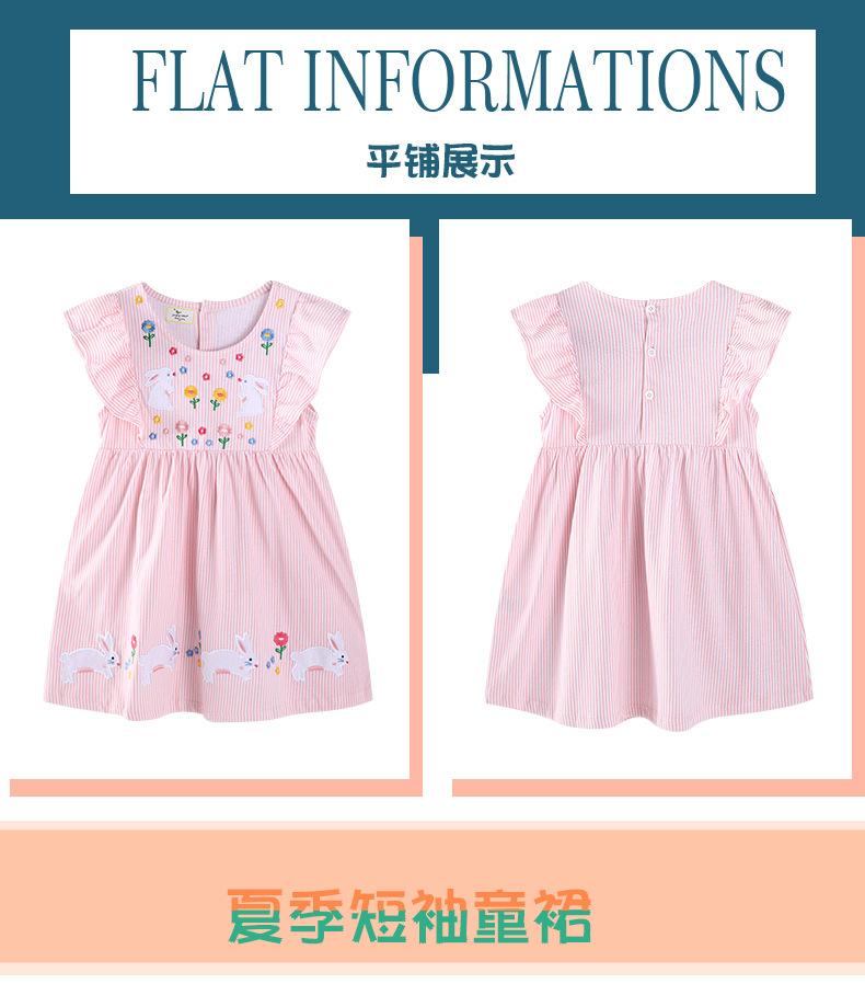 Vestido de Princesa de Manga Corta para Niñas Transfronterizo Verano Nuevo Europeo y Americano para Niños Cuello Redondo Patrón Bordado Vestido Lindo